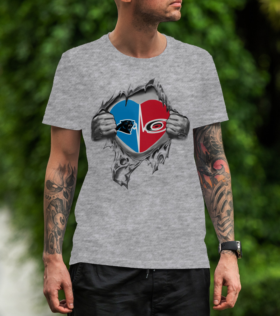 Carolina Panthers Hurricanes Heart Emblem Tear T-Shirt