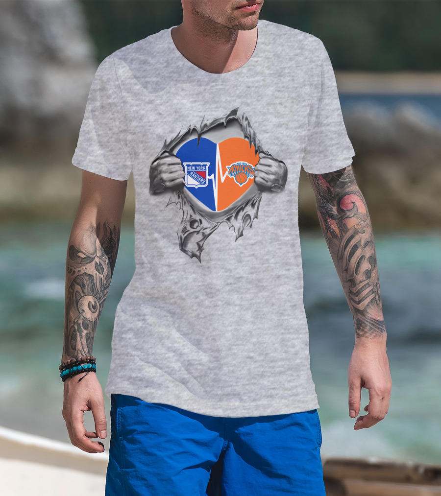 New York Rangers Knicks Heart Logo Tear T-Shirt