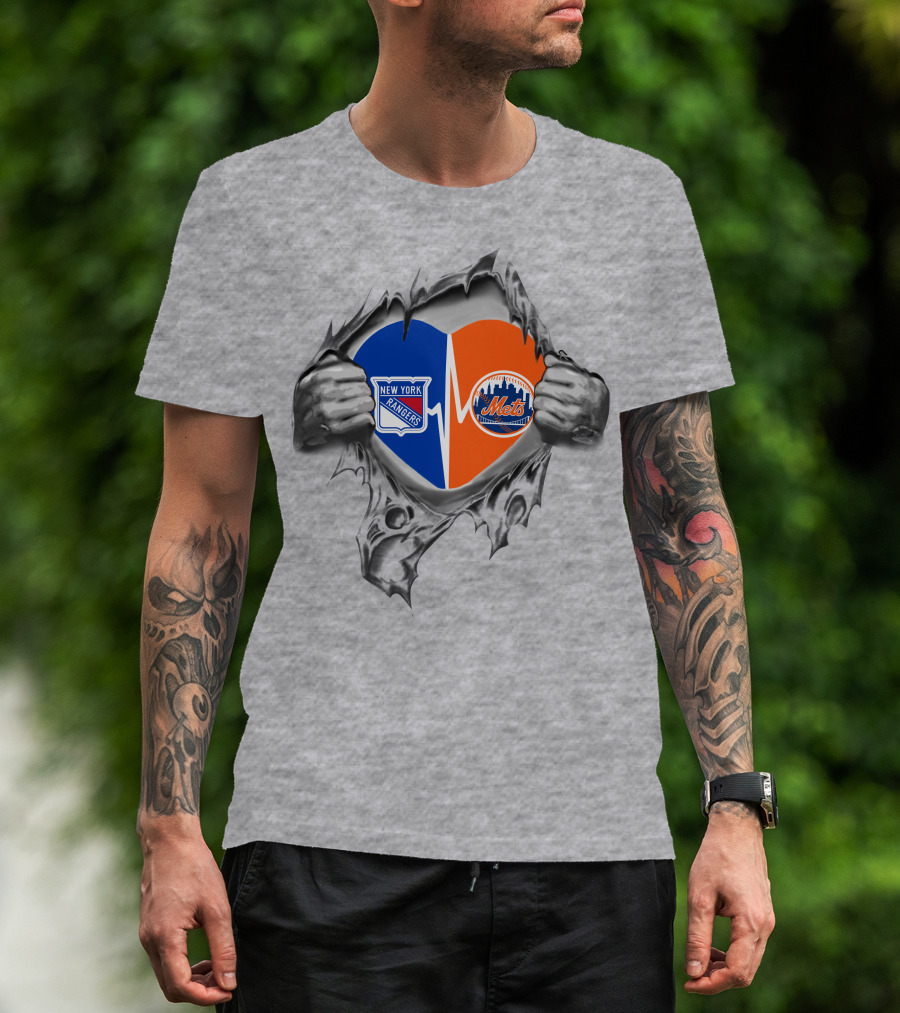 The New York Rangers Mets Heart Ripped T-shirt is designed for everyday wear and a consistent fit. Fabric is pre-shrunk ring-spun cotton with durable stitching. See the size chart below for exact measurements.