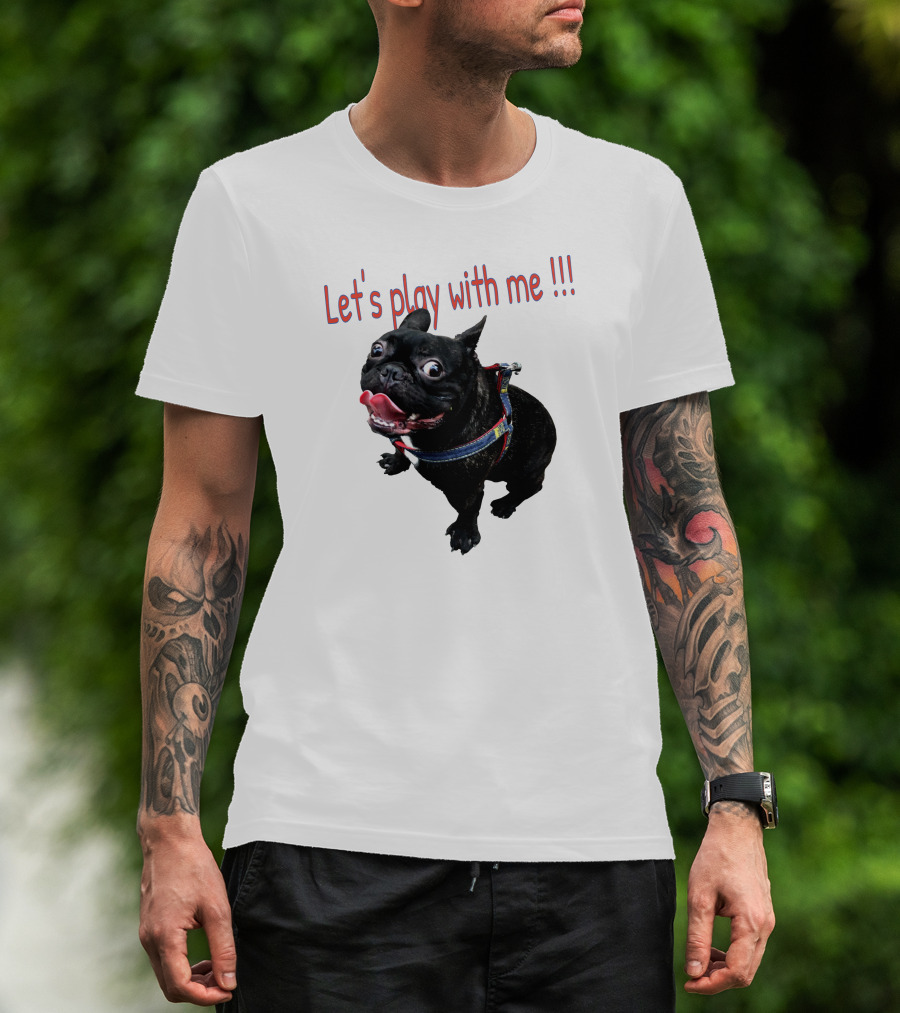 The Bulldog Super Let's Play With Me T-shirt is designed for everyday wear and a consistent fit. Fabric is pre-shrunk ring-spun cotton with durable stitching. See the size chart below for exact measurements.