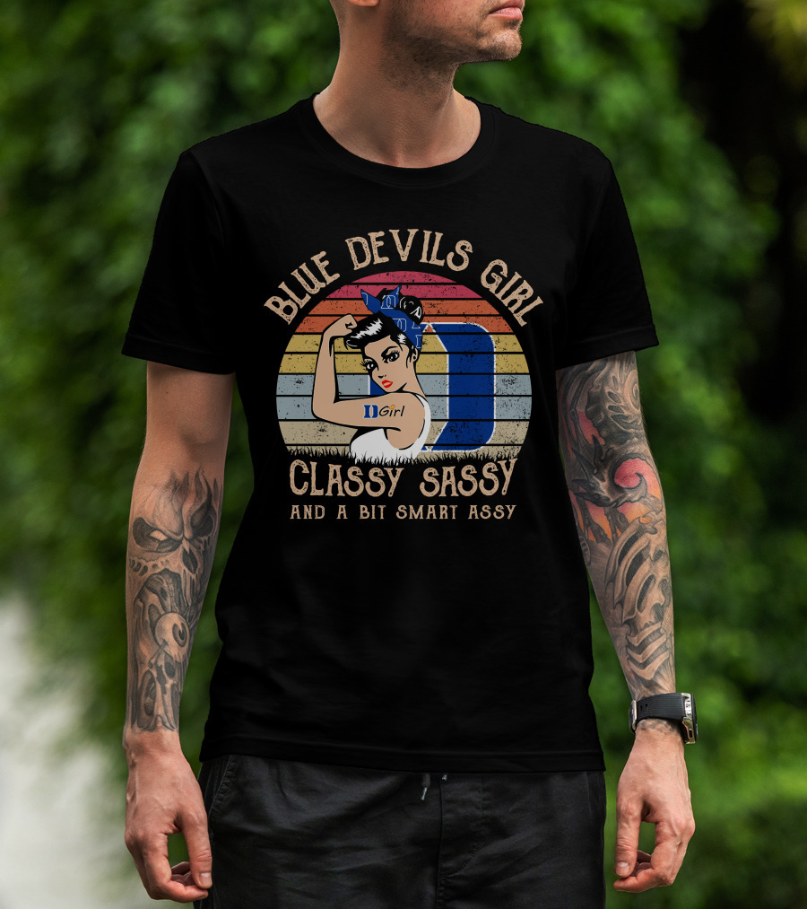 The Blue Devils Girl Classy Sassy And A Bit Smart Assy T-shirt is designed for everyday wear and a consistent fit. Fabric is pre-shrunk ring-spun cotton with durable stitching. See the size chart below for exact measurements.