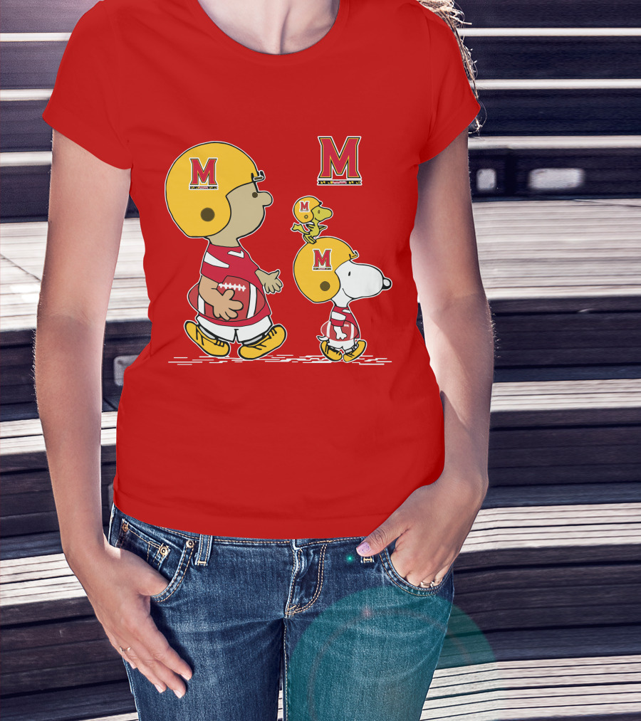 Maryland Terrapins Snoopy And Woodstock Football Fan Gear T-Shirt
