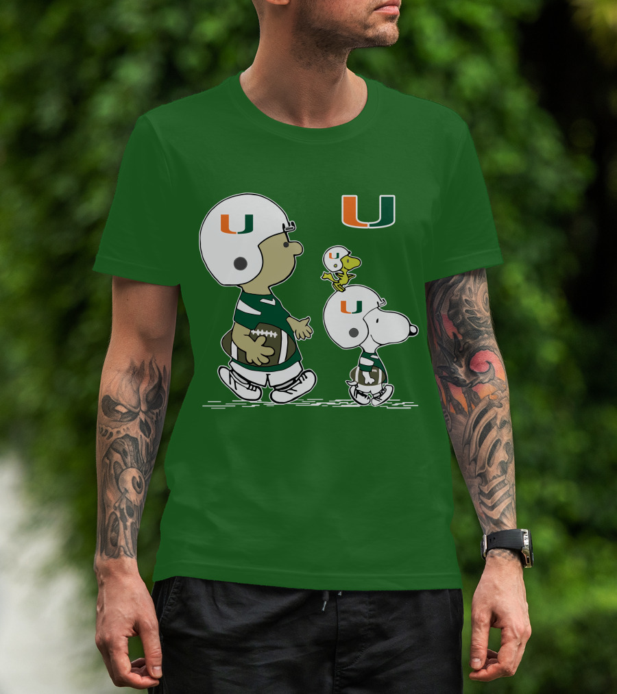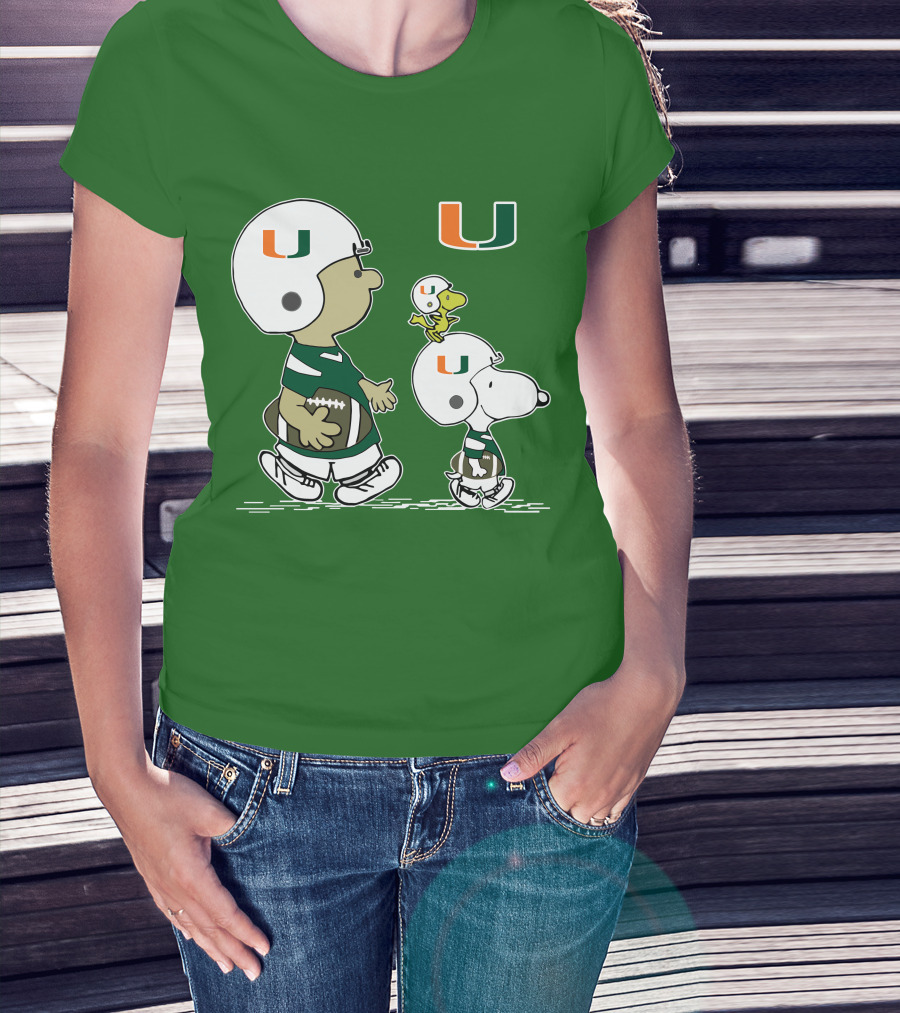 Miami Hurricanes Snoopy And Woodstock Football Helmets Peanuts Comic T-Shirt
