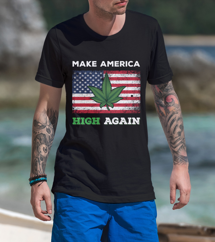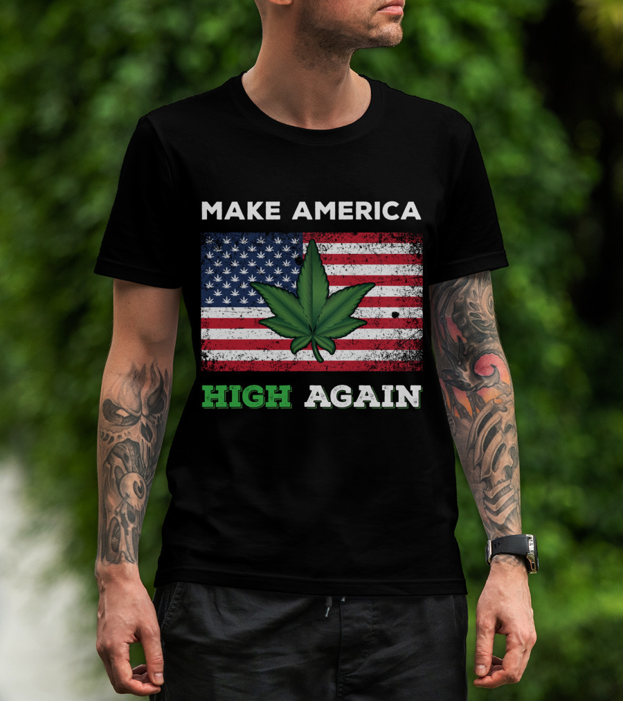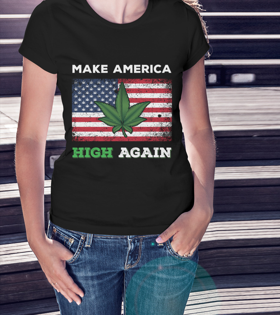 Make America High Again Pot Leaf USA Flag Weed Marijuana T-Shirt