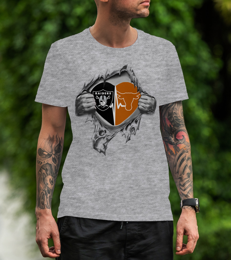 Raiders Longhorn Heartbeat Torn Reveal T-Shirt