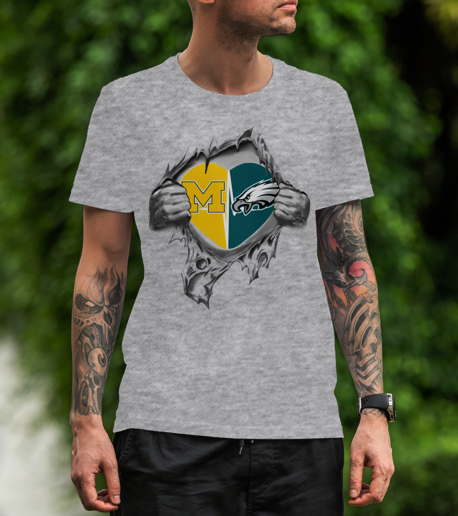 Michigan And Philadelphia Eagles Heart Unity T-Shirt