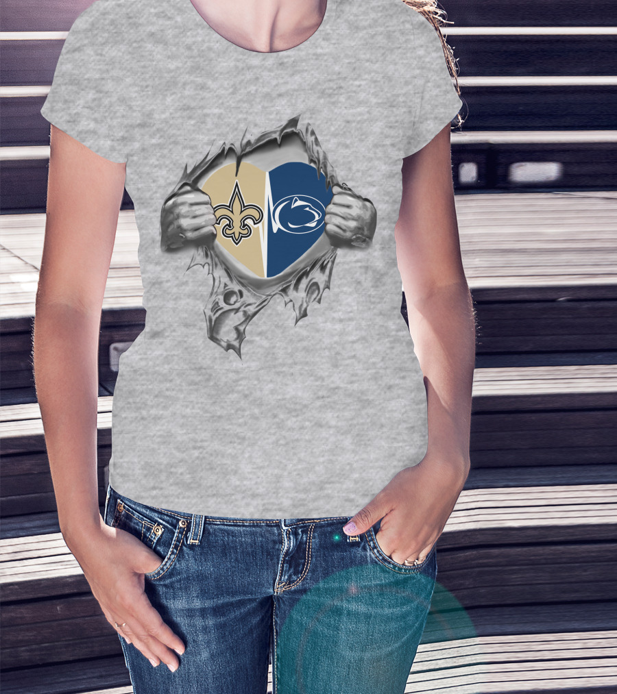 The Saints and Penn State Heart T-shirt is designed for everyday wear and a consistent fit. Fabric is pre-shrunk ring-spun cotton with durable stitching. See the size chart below for exact measurements.