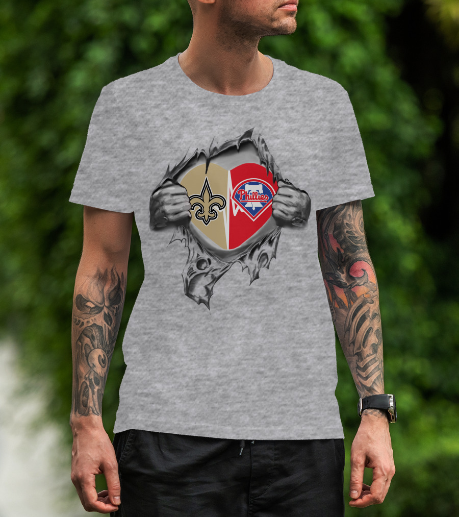 The Saints Phillies Heart Logo Tear T-shirt is designed for everyday wear and a consistent fit. Fabric is pre-shrunk ring-spun cotton with durable stitching. See the size chart below for exact measurements.