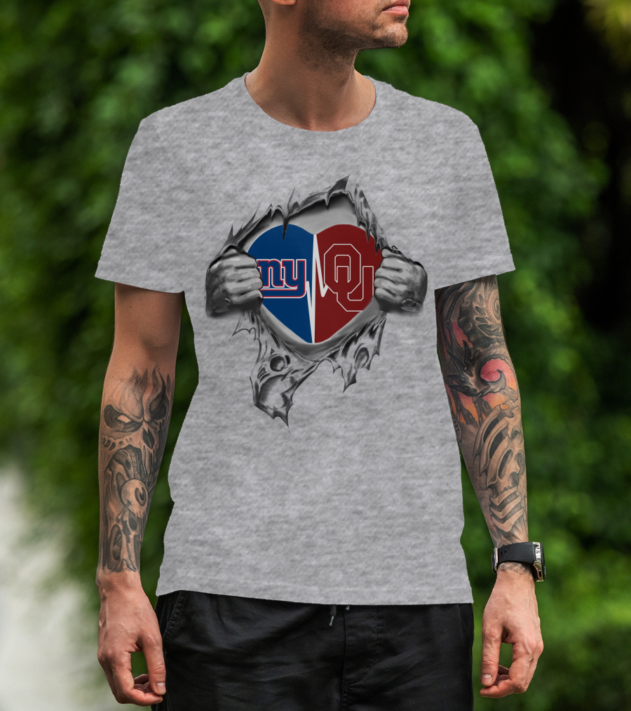The Giants Sooners Heart ny OU T-shirt is designed for everyday wear and a consistent fit. Fabric is pre-shrunk ring-spun cotton with durable stitching. See the size chart below for exact measurements.