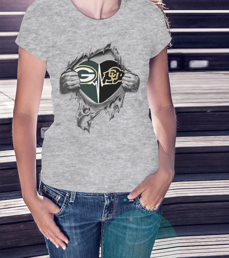 Green Bay Packers Colorado Buffaloes Heart Rip T-Shirt