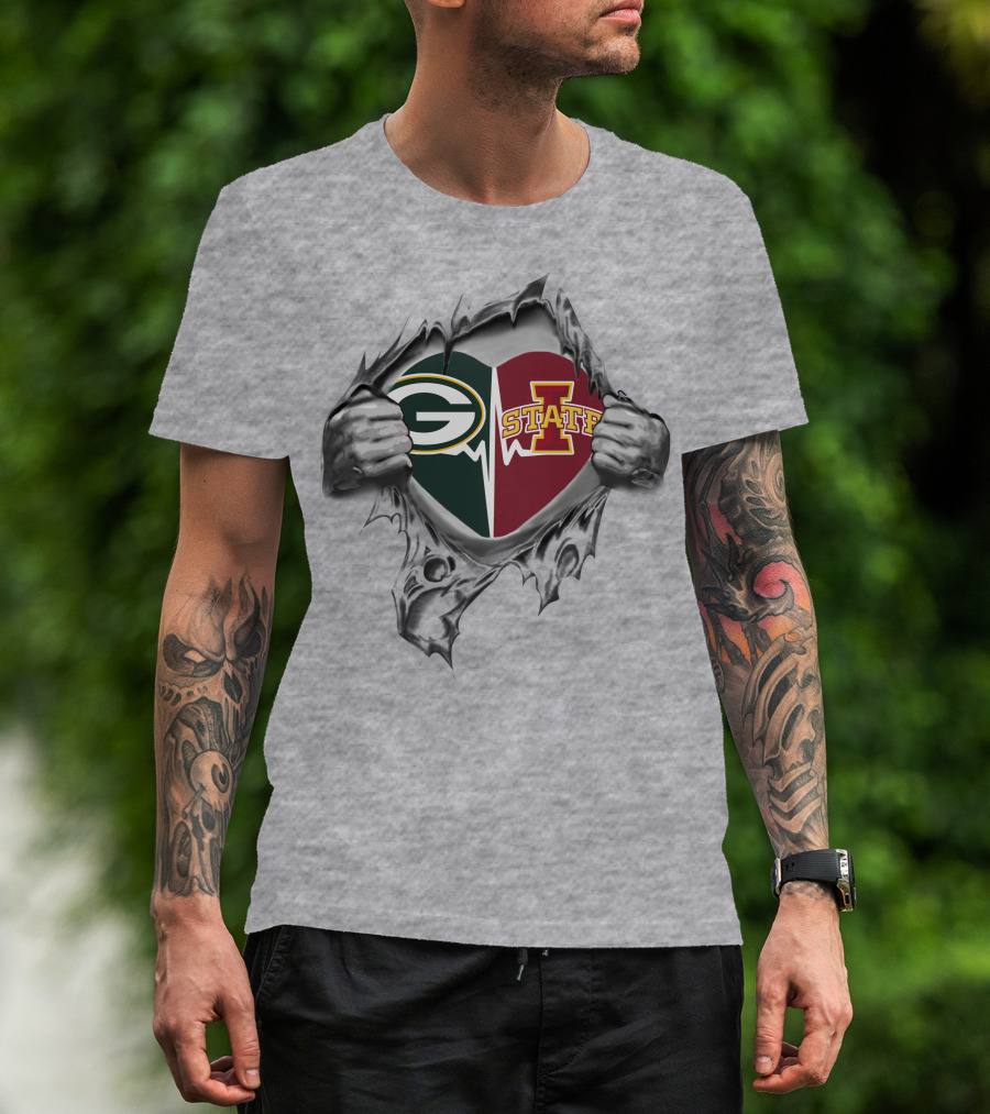 Green Bay Packers Iowa State Cyclones Heart Logo Ripped T-Shirt