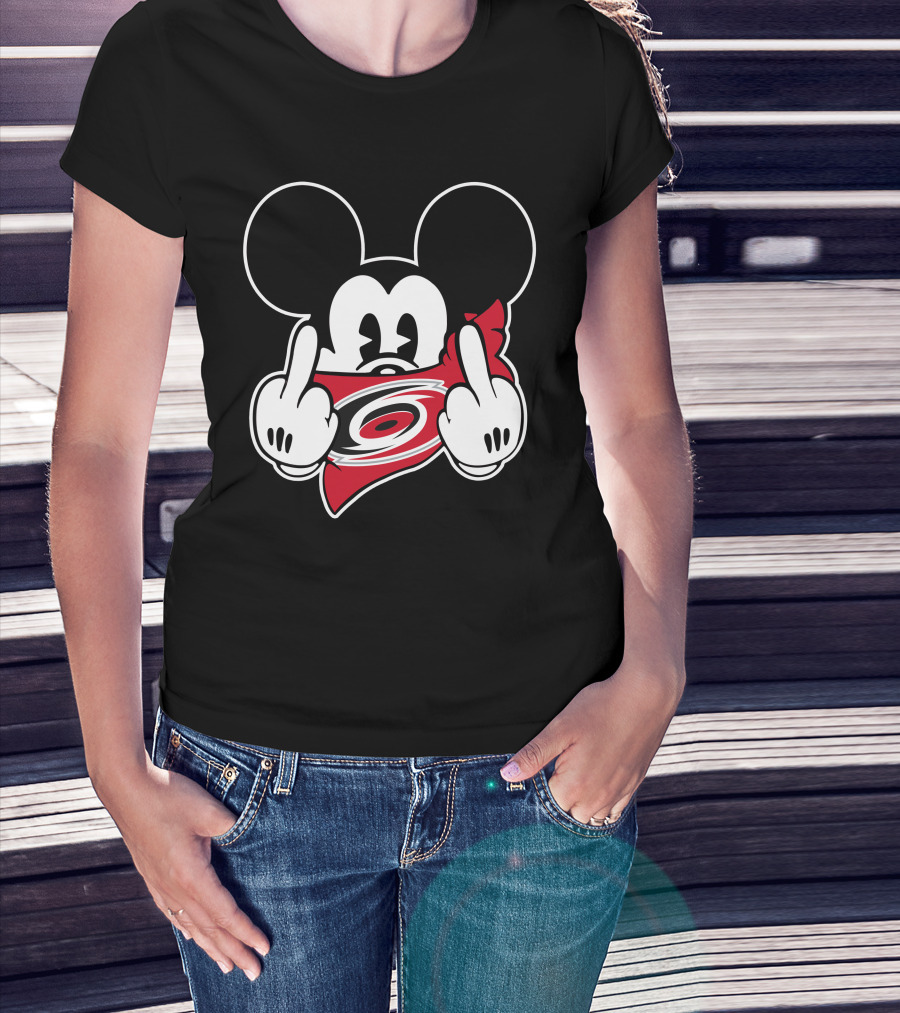 Hurricanes Mickey Middle Finger Gesture Red Bandana T-Shirt