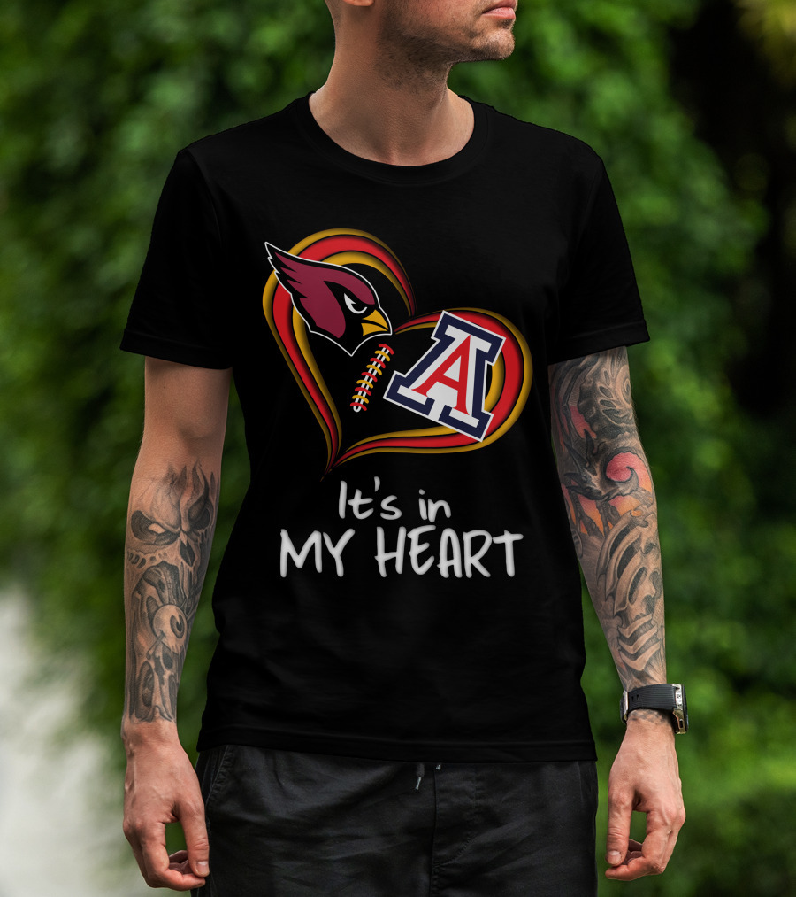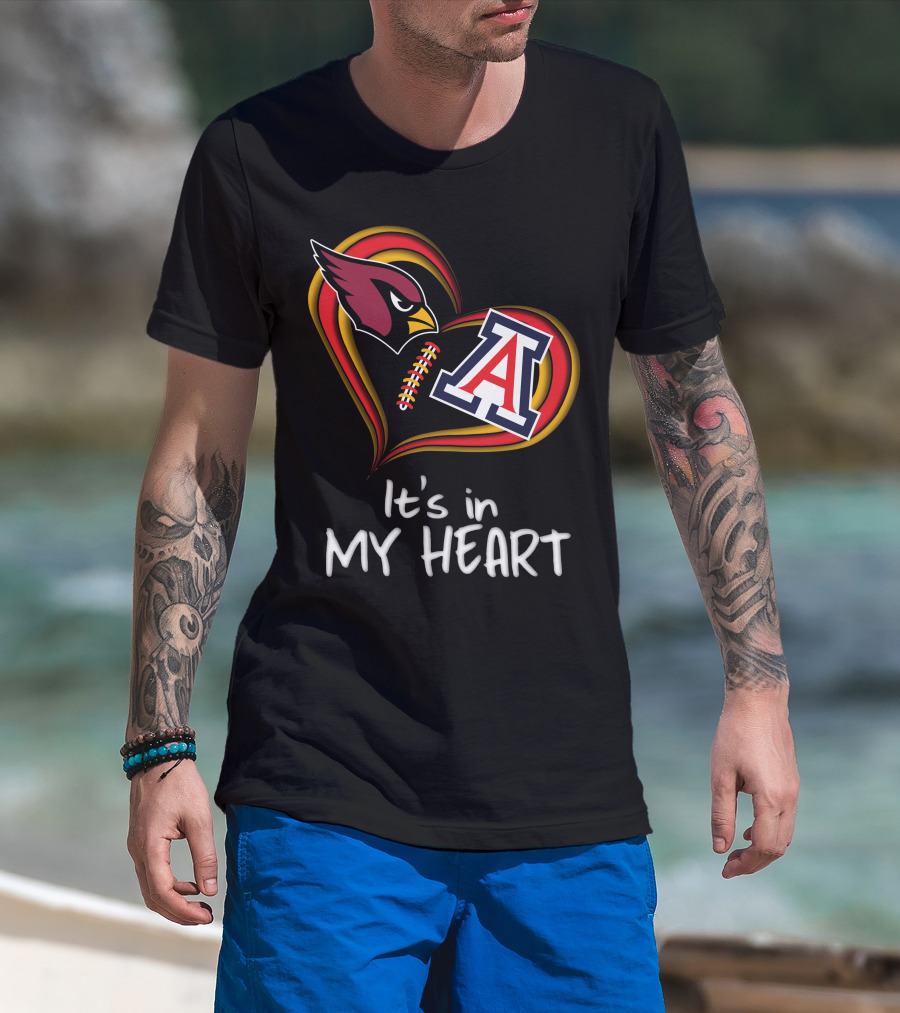 The Cardinals Arizona A It's In My Heart T-shirt is designed for everyday wear and a consistent fit. Fabric is pre-shrunk ring-spun cotton with durable stitching. See the size chart below for exact measurements.