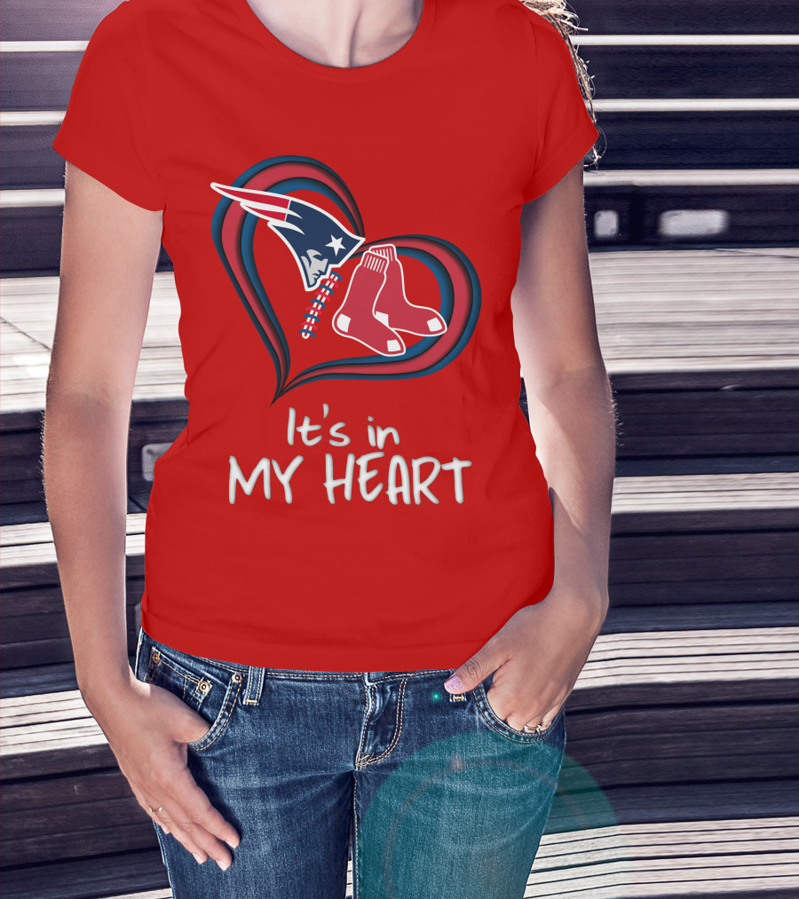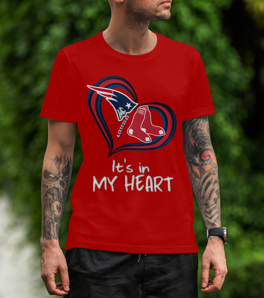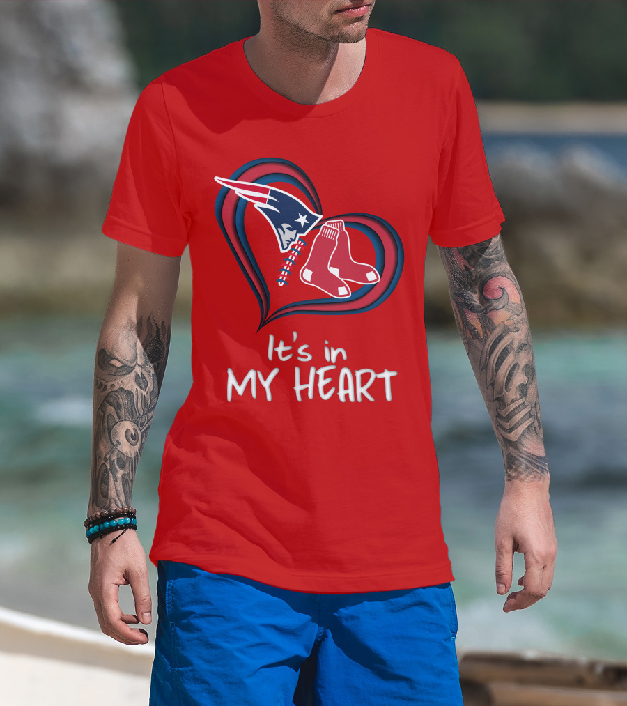 The It's in My Heart Patriots Red Sox T-shirt is designed for everyday wear and a consistent fit. Fabric is pre-shrunk ring-spun cotton with durable stitching. See the size chart below for exact measurements.