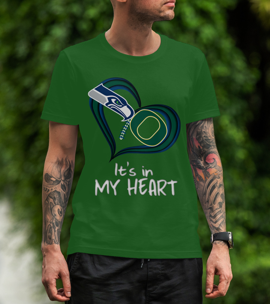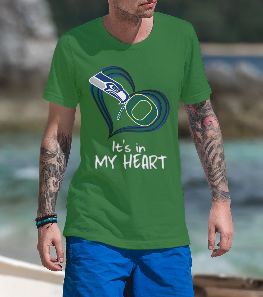 The Seahawks Ducks It's in My Heart T-shirt is designed for everyday wear and a consistent fit. Fabric is pre-shrunk ring-spun cotton with durable stitching. See the size chart below for exact measurements.