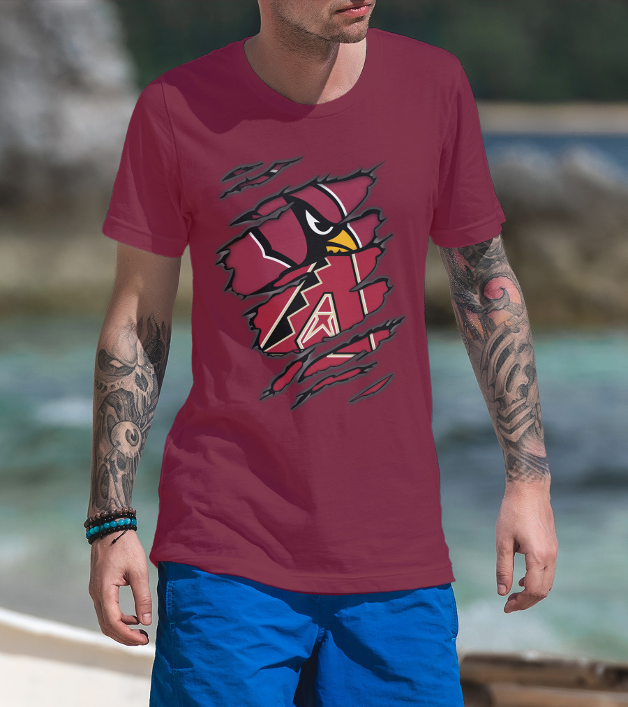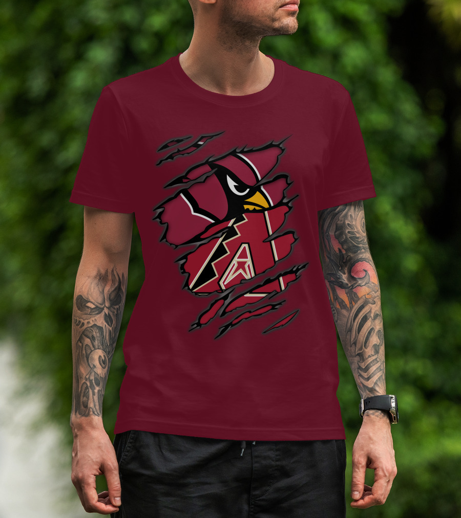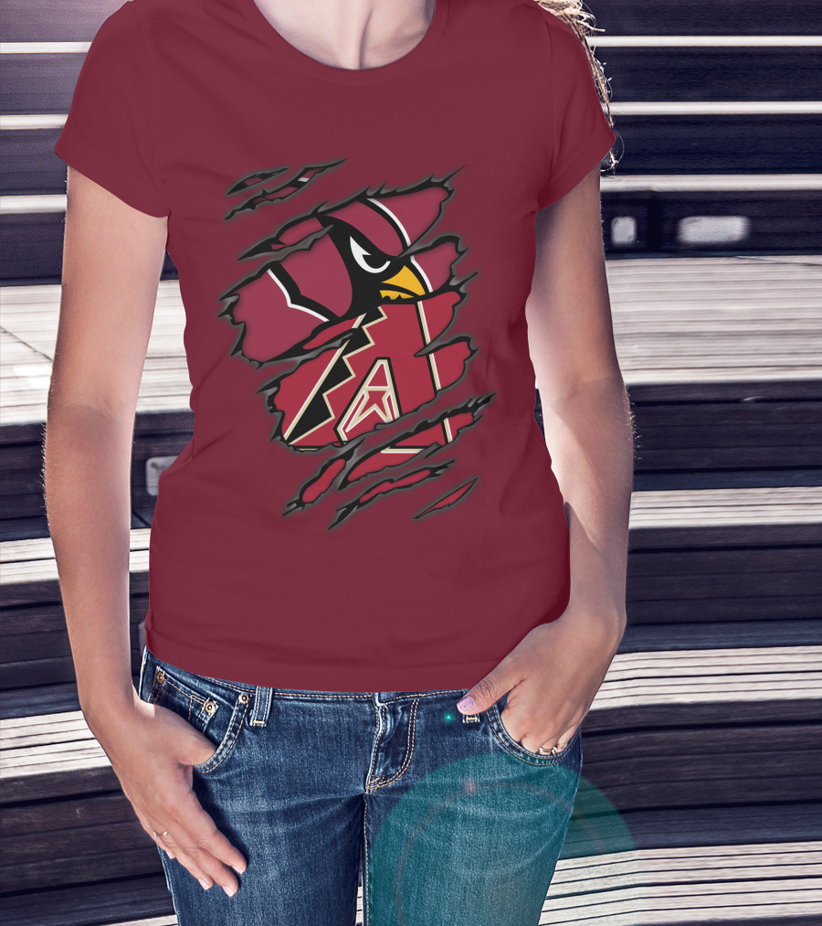 Cardinals And Diamondbacks Union Ripped Claw Marks Logo Fan T-Shirt