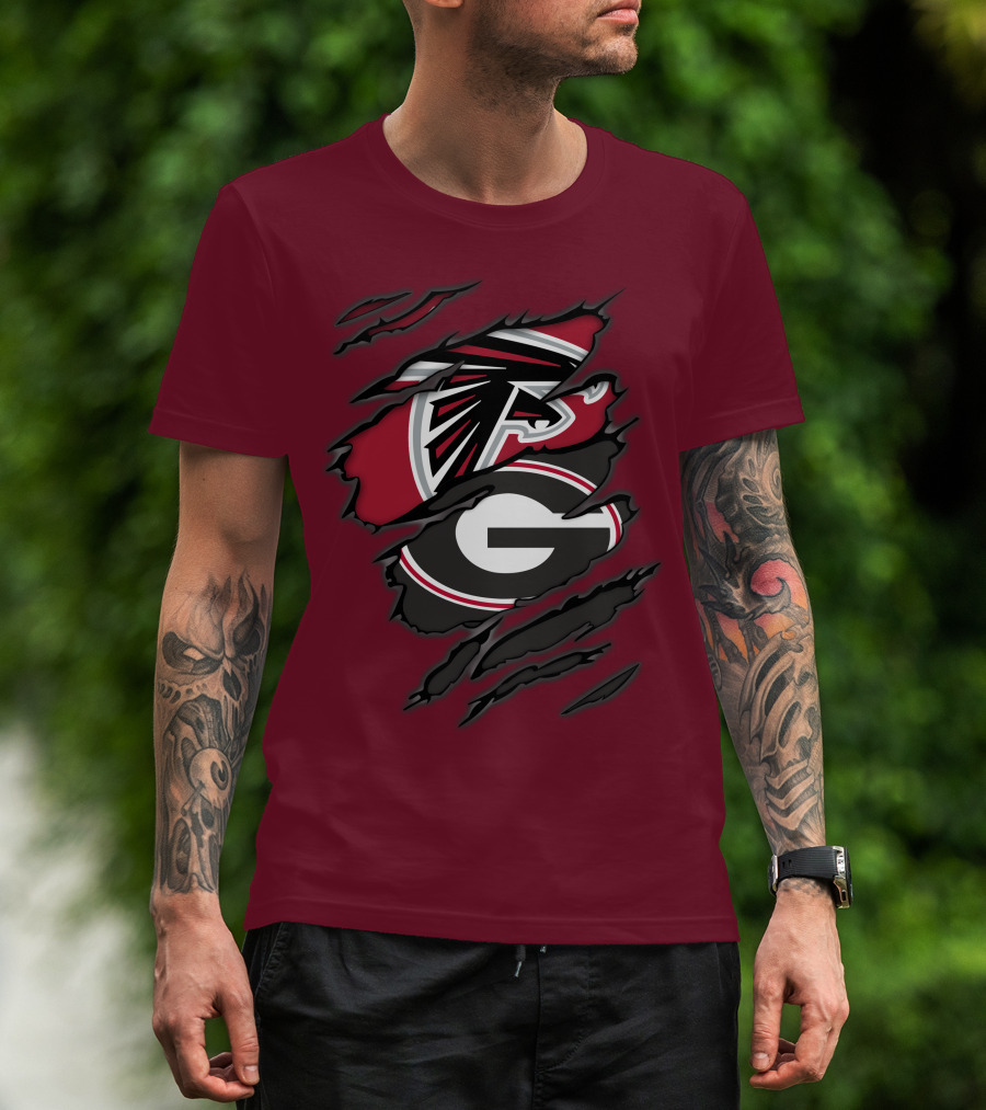 Atlanta Falcons Georgia Bulldogs Claw Marks Logo Combo T-Shirt