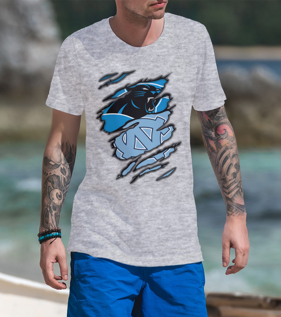 Carolina Panthers And North Carolina Tar Heels Logo Mashup T-Shirt