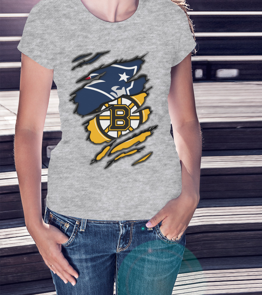 Patriots Bruins New England Football Boston Hockey Fan Collaboration T-Shirt