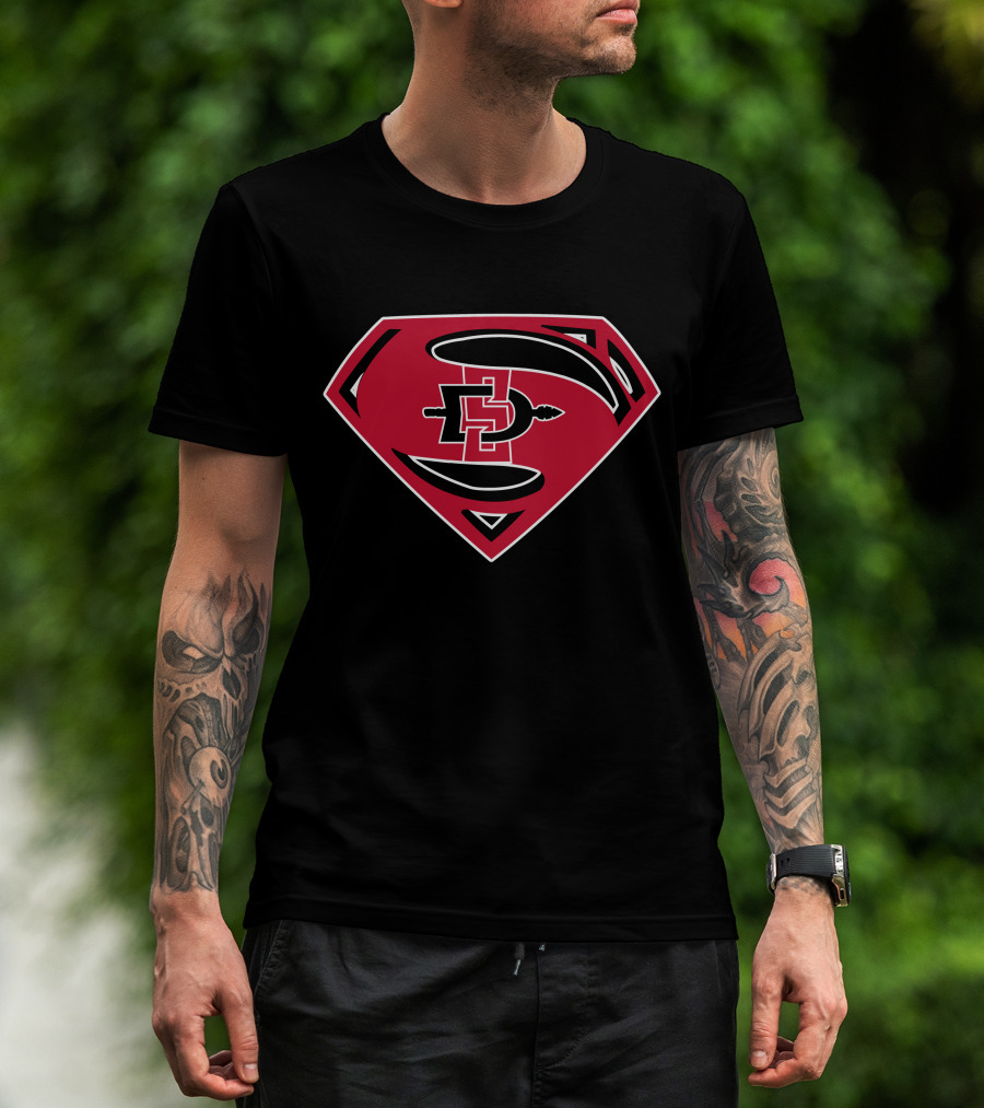 The San Diego State Aztecs Superman T-shirt is designed for everyday wear and a consistent fit. Fabric is pre-shrunk ring-spun cotton with durable stitching. See the size chart below for exact measurements.