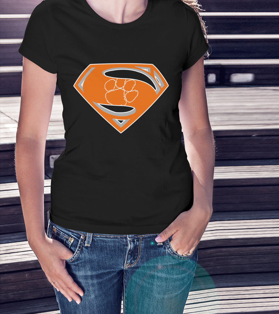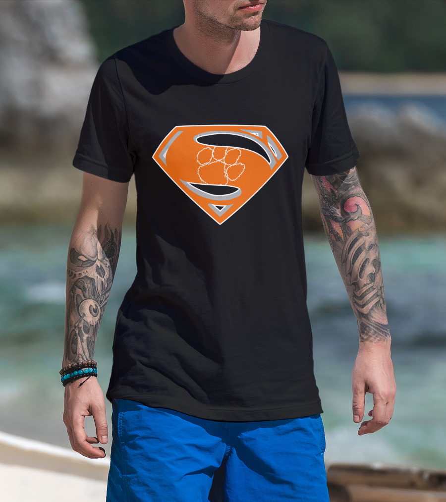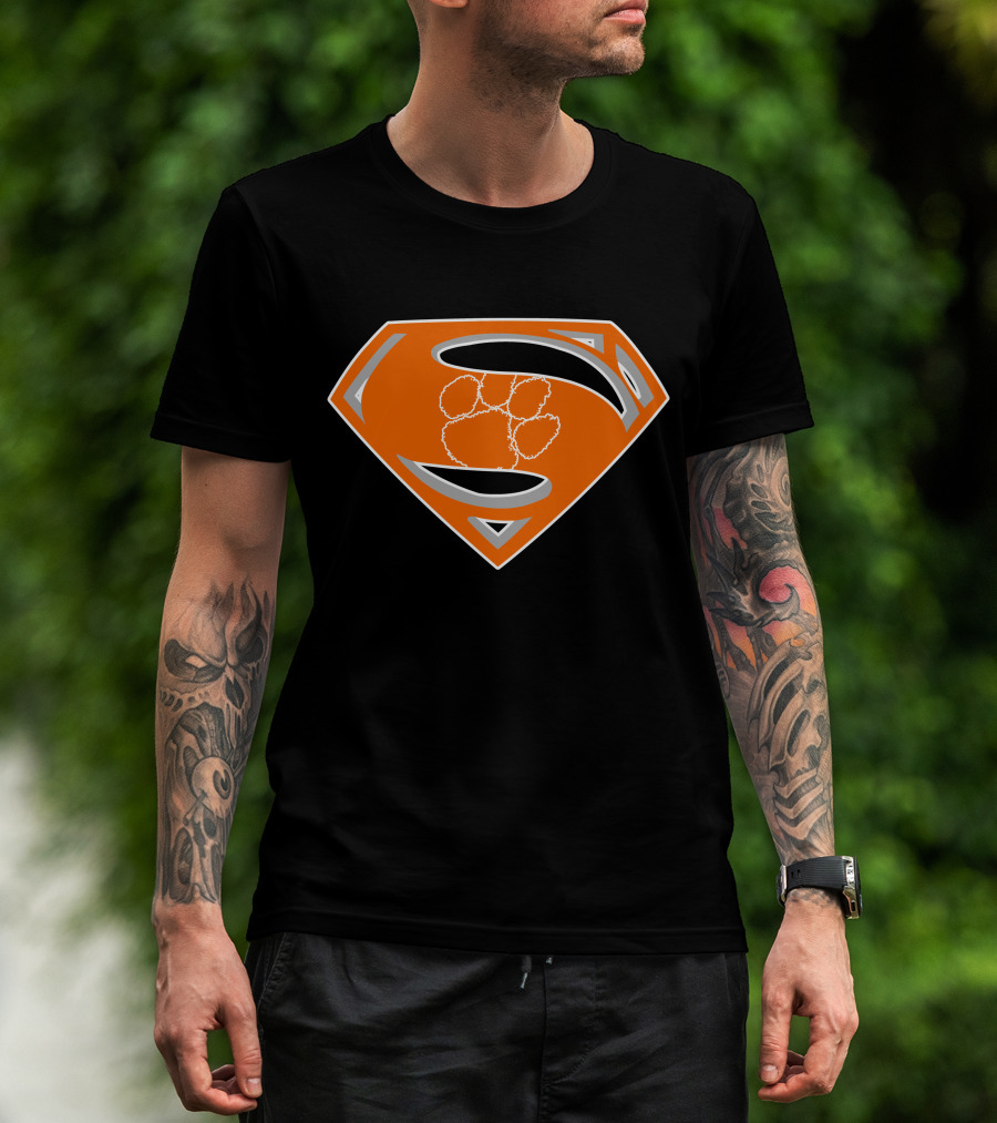 Superman Logo With Clemson Tigers Paw T-Shirt