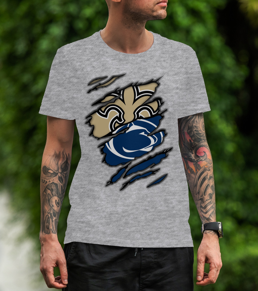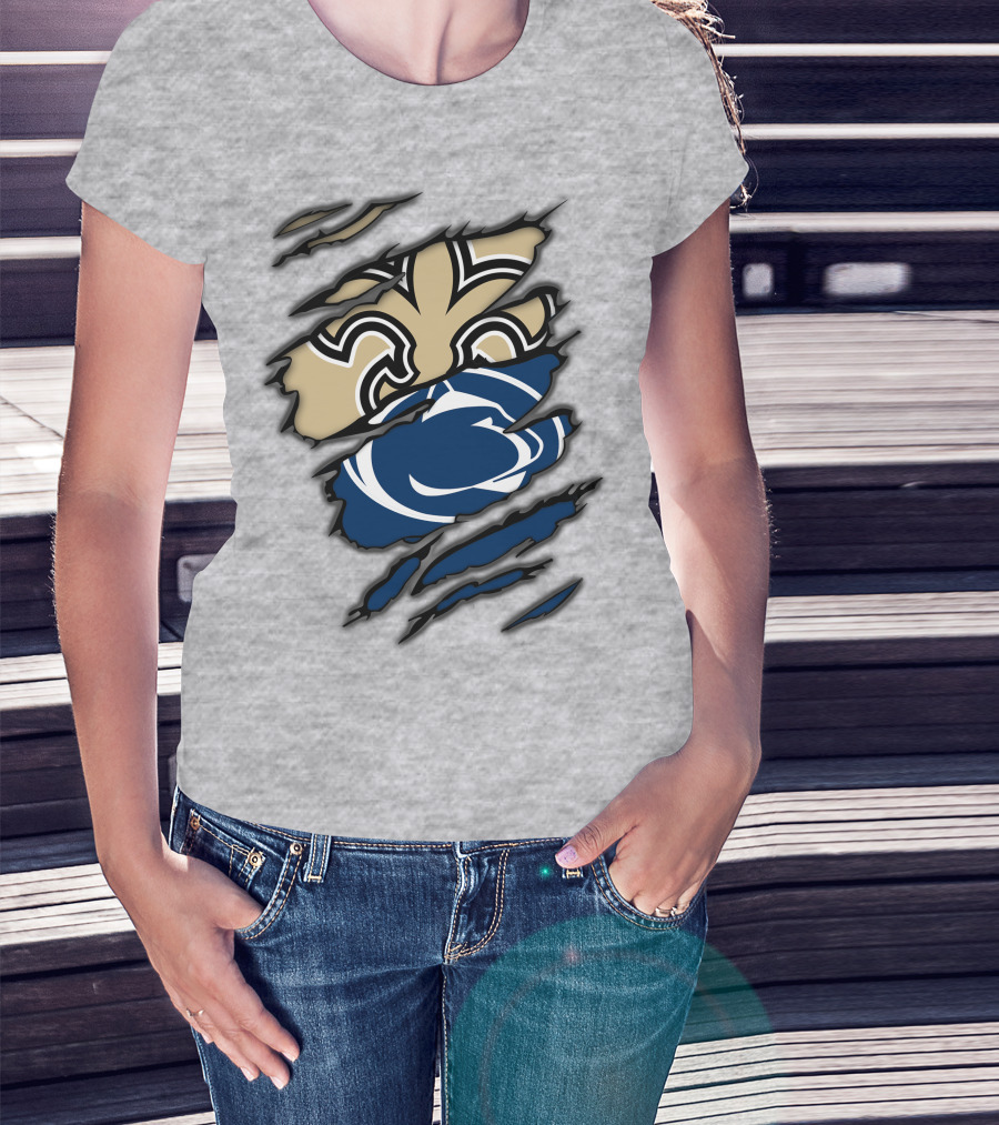 Saints Penn State Logo Combination Torn Effect T-Shirt