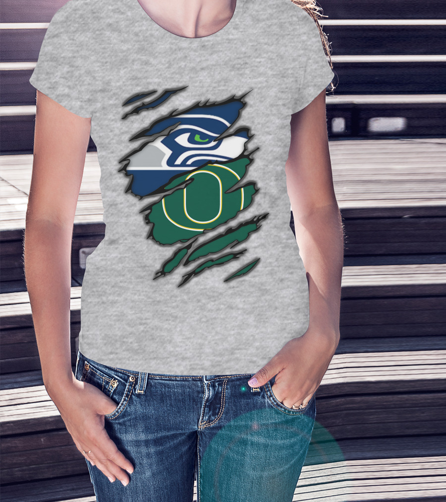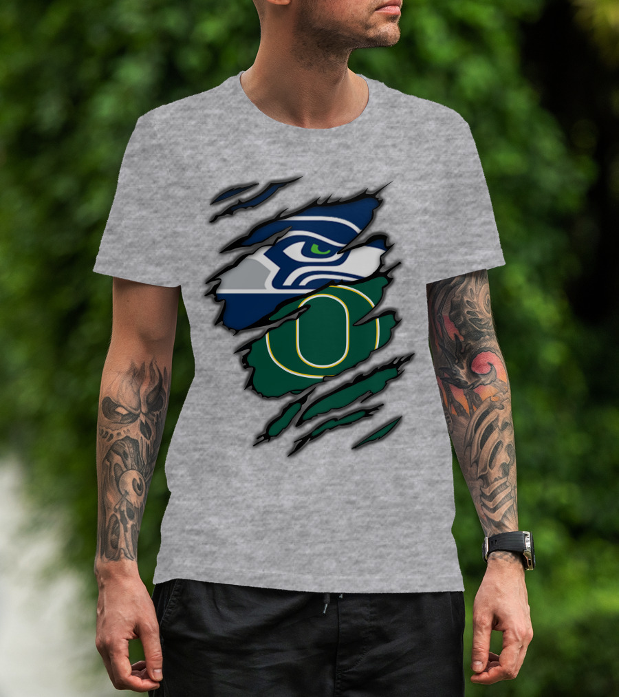 Seahawks Ducks Claw Style Logo Rip Combination T-Shirt