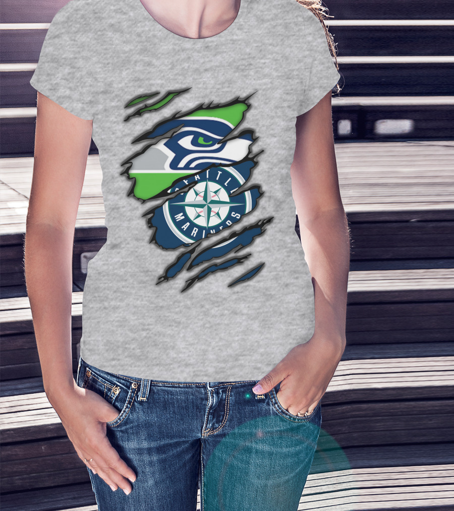 Seattle Seahawks Seattle Mariners Logo Fusion T-Shirt