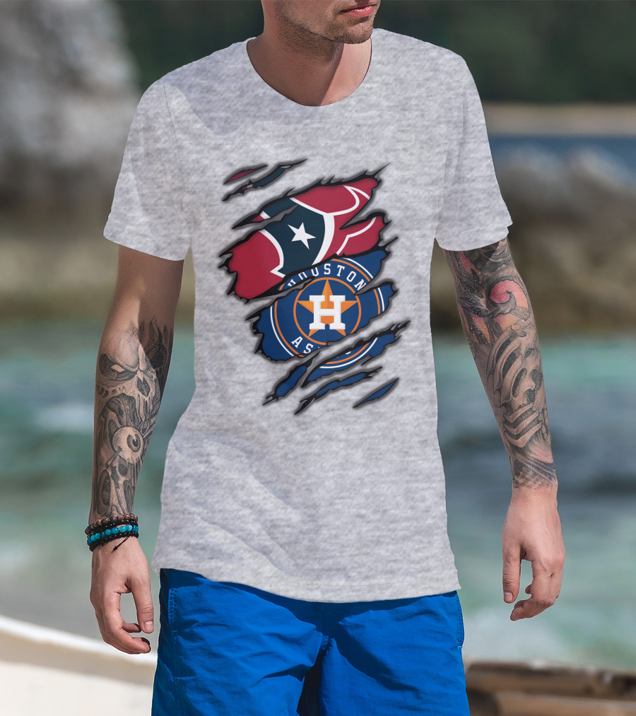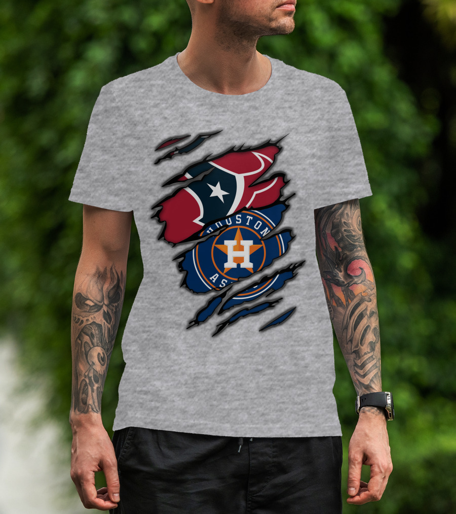 The Houston Texans and Astros Logos Ripped T-shirt is designed for everyday wear and a consistent fit. Fabric is pre-shrunk ring-spun cotton with durable stitching. See the size chart below for exact measurements.