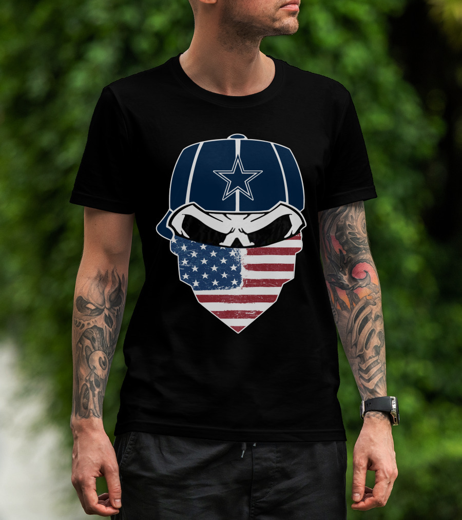 Cowboys Skull With Star Cap And American Flag Bandana T-Shirt