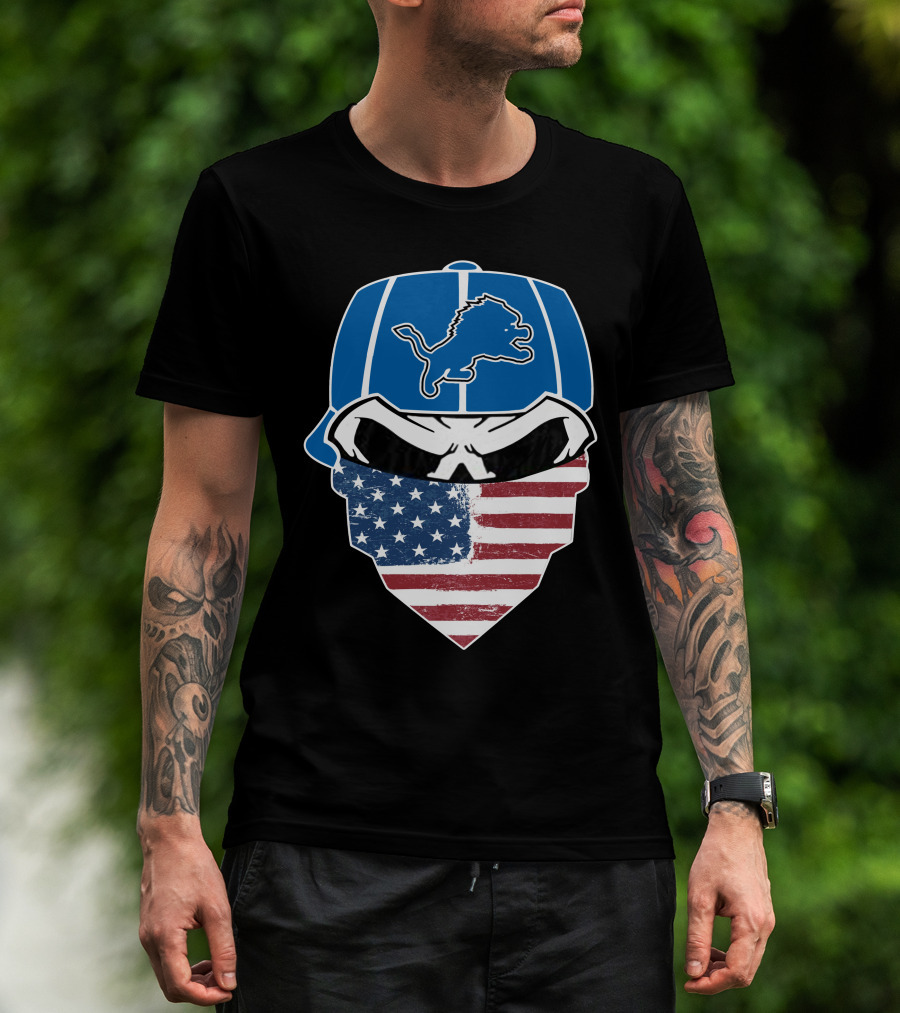 Detroit Lions Skull Bandana American Flag T-Shirt