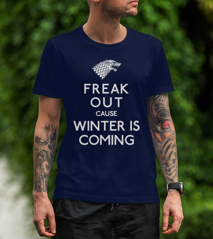The Freak Out Cause Winter Is Coming T-shirt is designed for everyday wear and a consistent fit. Fabric is pre-shrunk ring-spun cotton with durable stitching. See the size chart below for exact measurements.