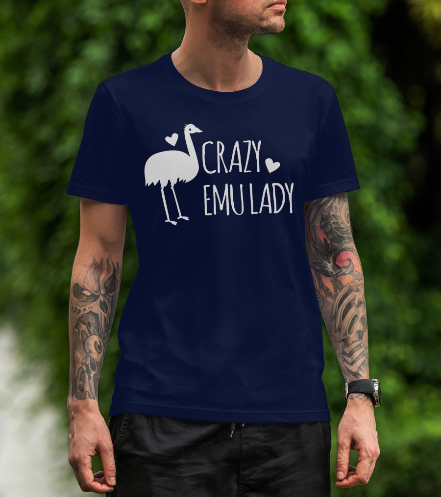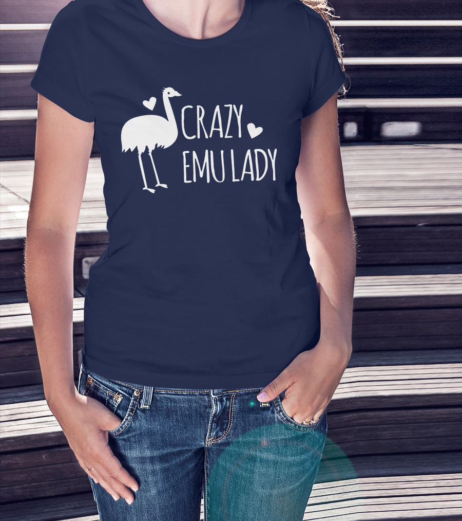 Crazy Emu Lady Emu Illustration With Hearts T-Shirt