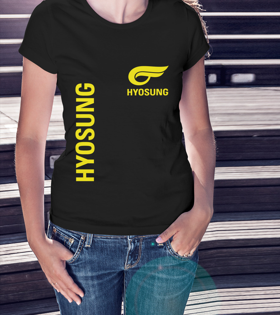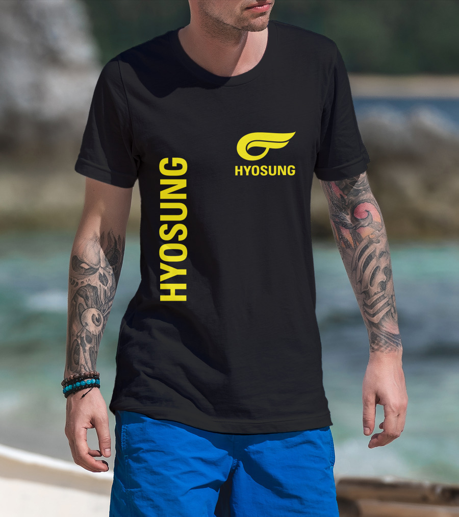 HYOSUNG Logo Stylized Yellow Text Brand T-Shirt