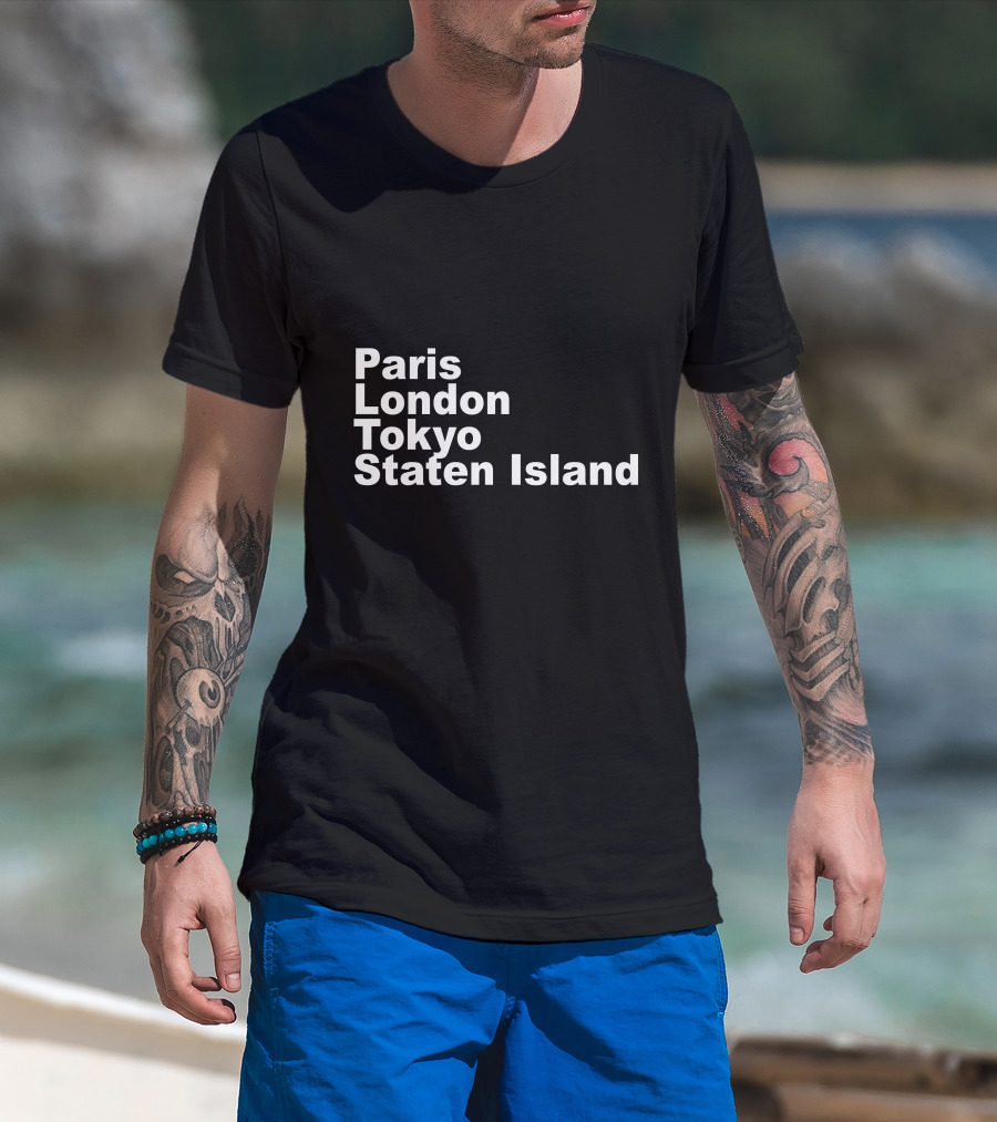 Paris London Tokyo Staten Island Cities Text Display T-Shirt