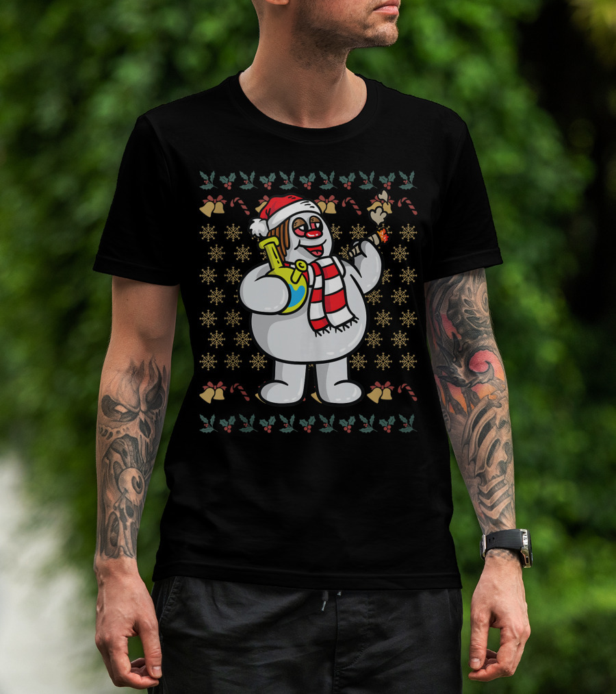 Rasta Snowman Christmas Cannabis Weed Smoking Santa Hat Scarf T-Shirt