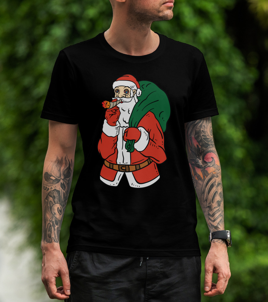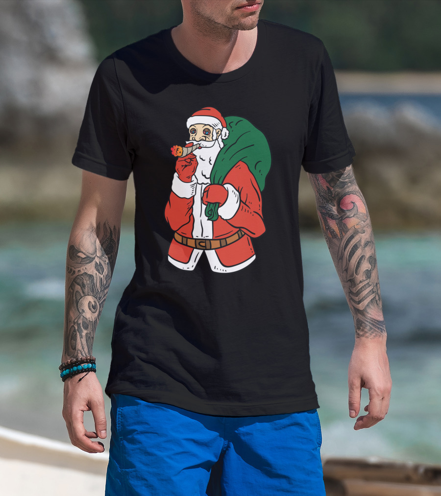 Santa Claus Smoking Weed Cannabis Marijuana Carrying Bag T-Shirt