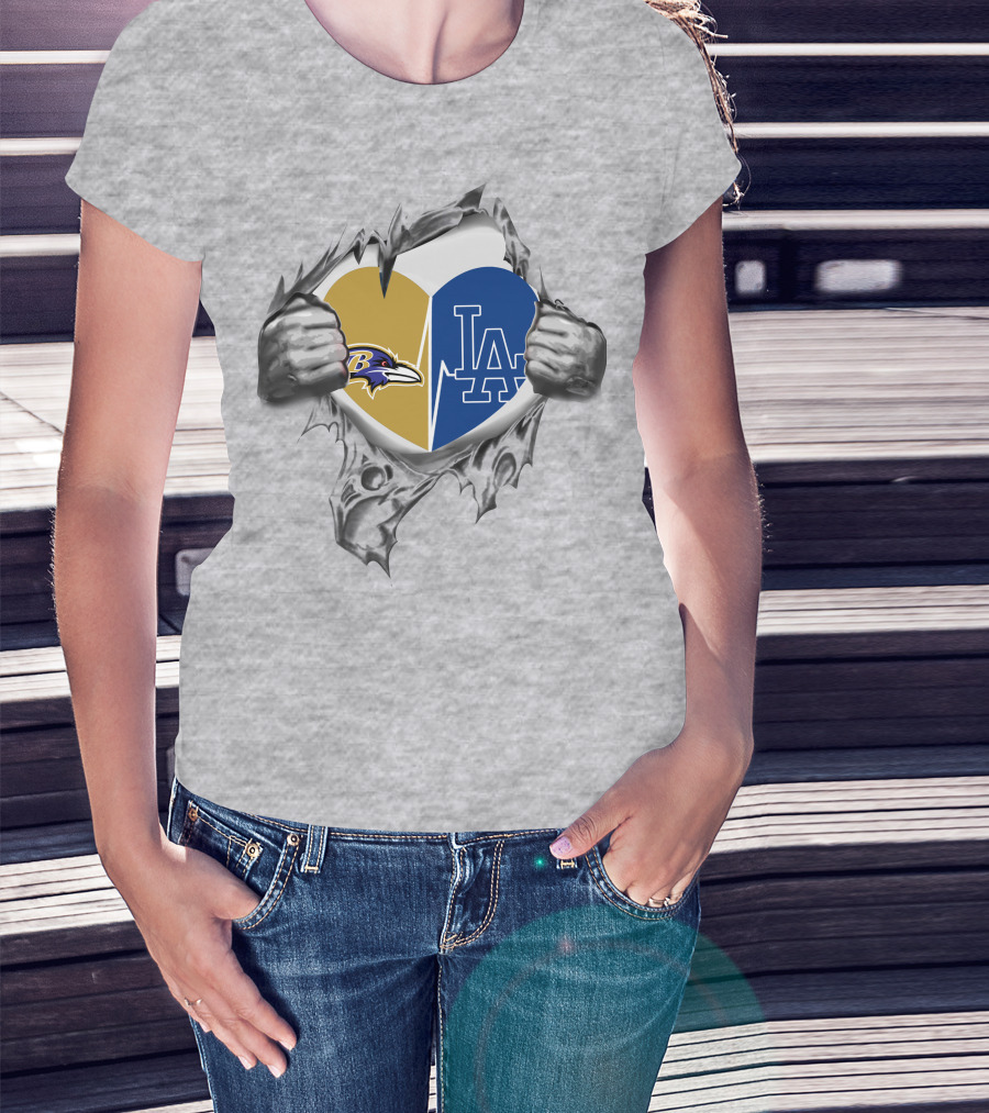 Baltimore Ravens And Los Angeles Dodgers Heart T-Shirt