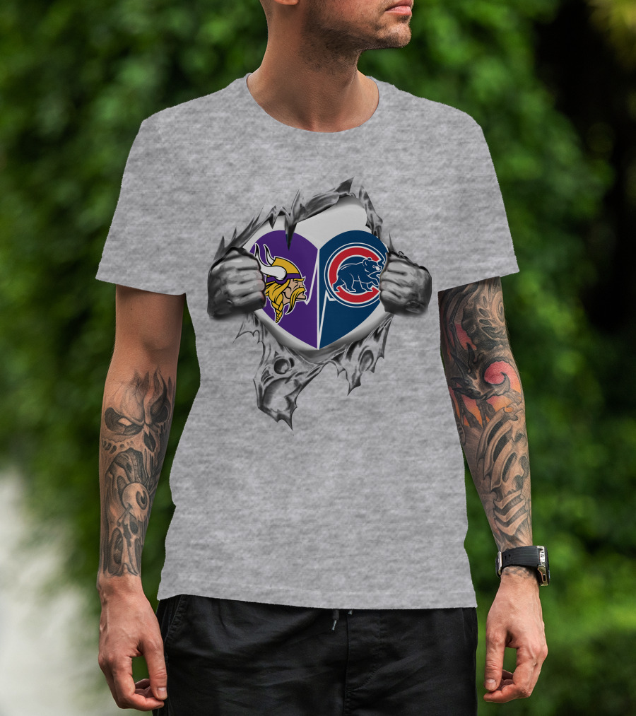 Minnesota Vikings Chicago Cubs Heart Logo Fusion T-Shirt