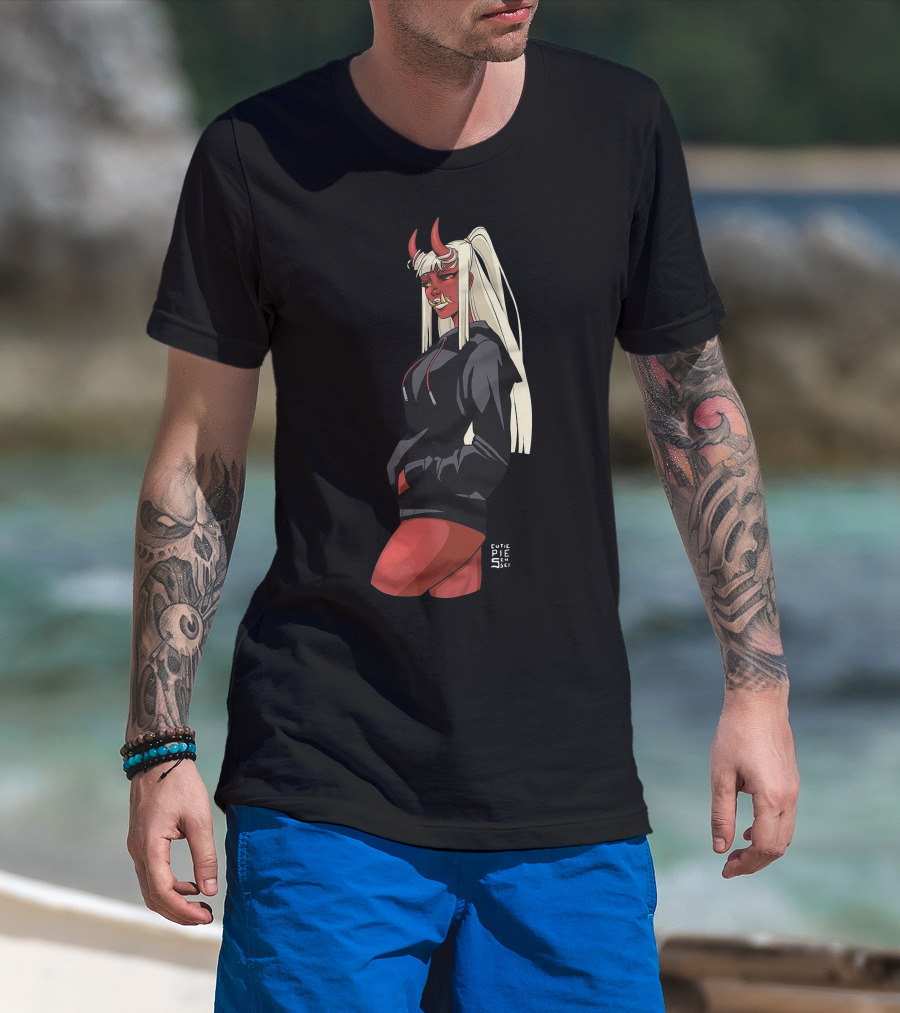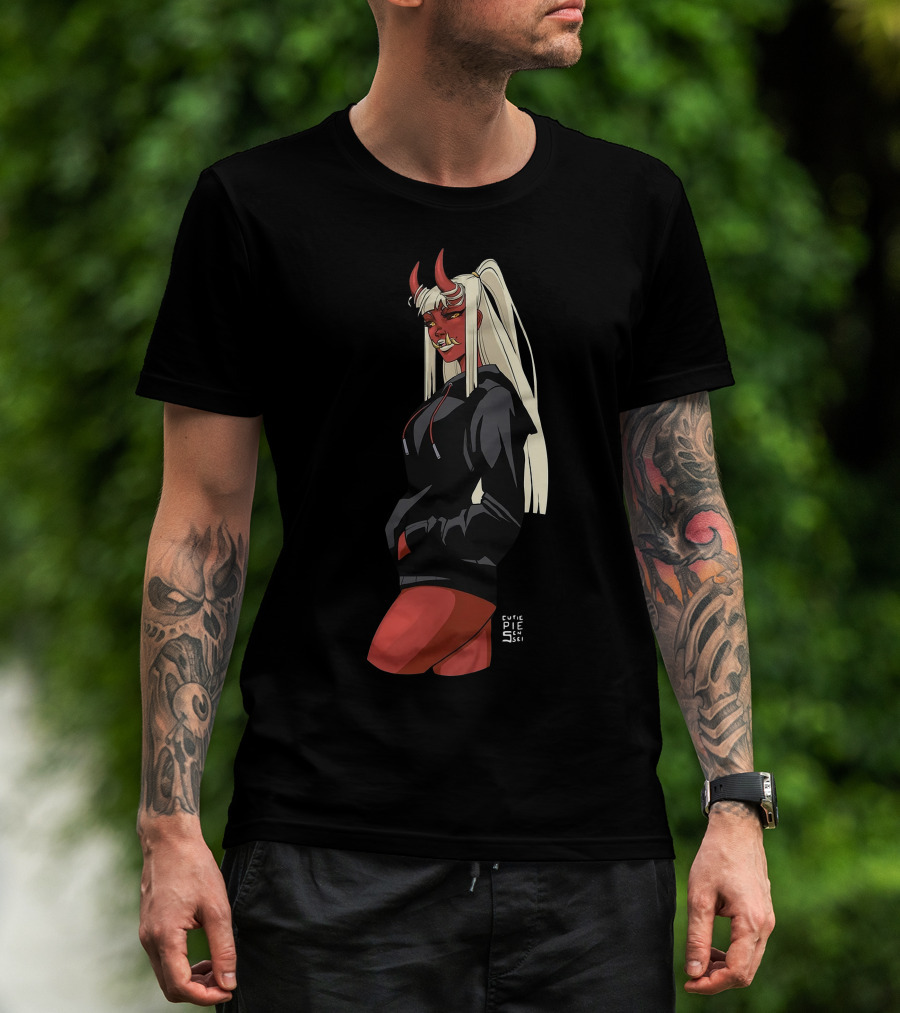 The Cutie Pie Sensei X Redpop Oni Chan Demon Girl in Black Hoodie with Red Horns and Long Blonde Hair T-shirt is designed for everyday wear and a consistent fit. Fabric is pre-shrunk ring-spun cotton with durable stitching. See the size chart below for exact measurements.