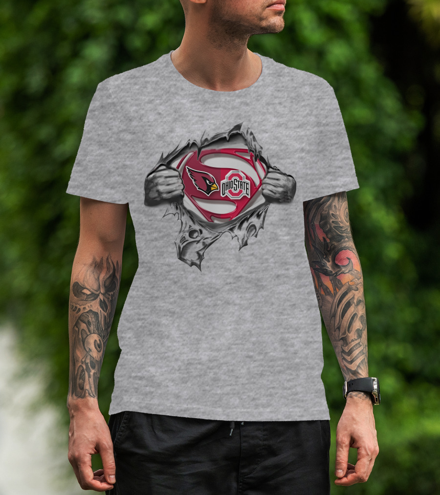 Arizona Cardinals Ohio State Buckeyes Superman Logo Tear Open Combo T-Shirt