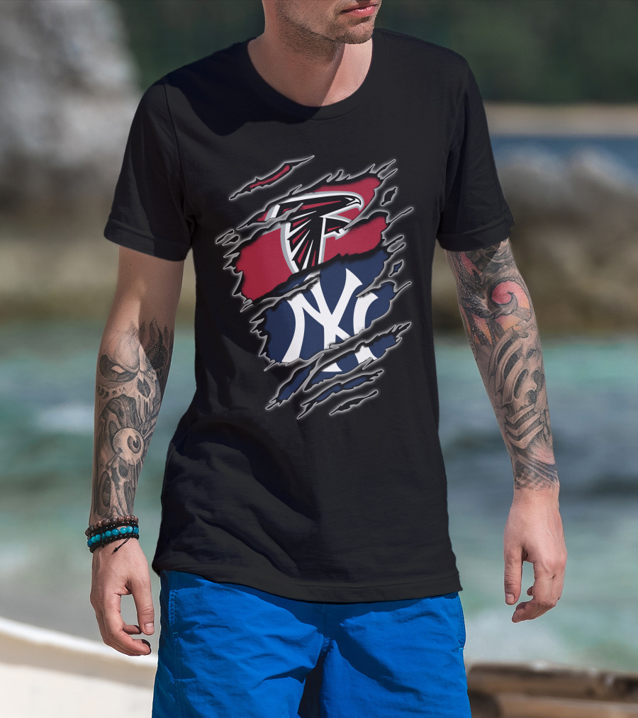 The Falcons Yankees Logo Fusion T-shirt is designed for everyday wear and a consistent fit. Fabric is pre-shrunk ring-spun cotton with durable stitching. See the size chart below for exact measurements.