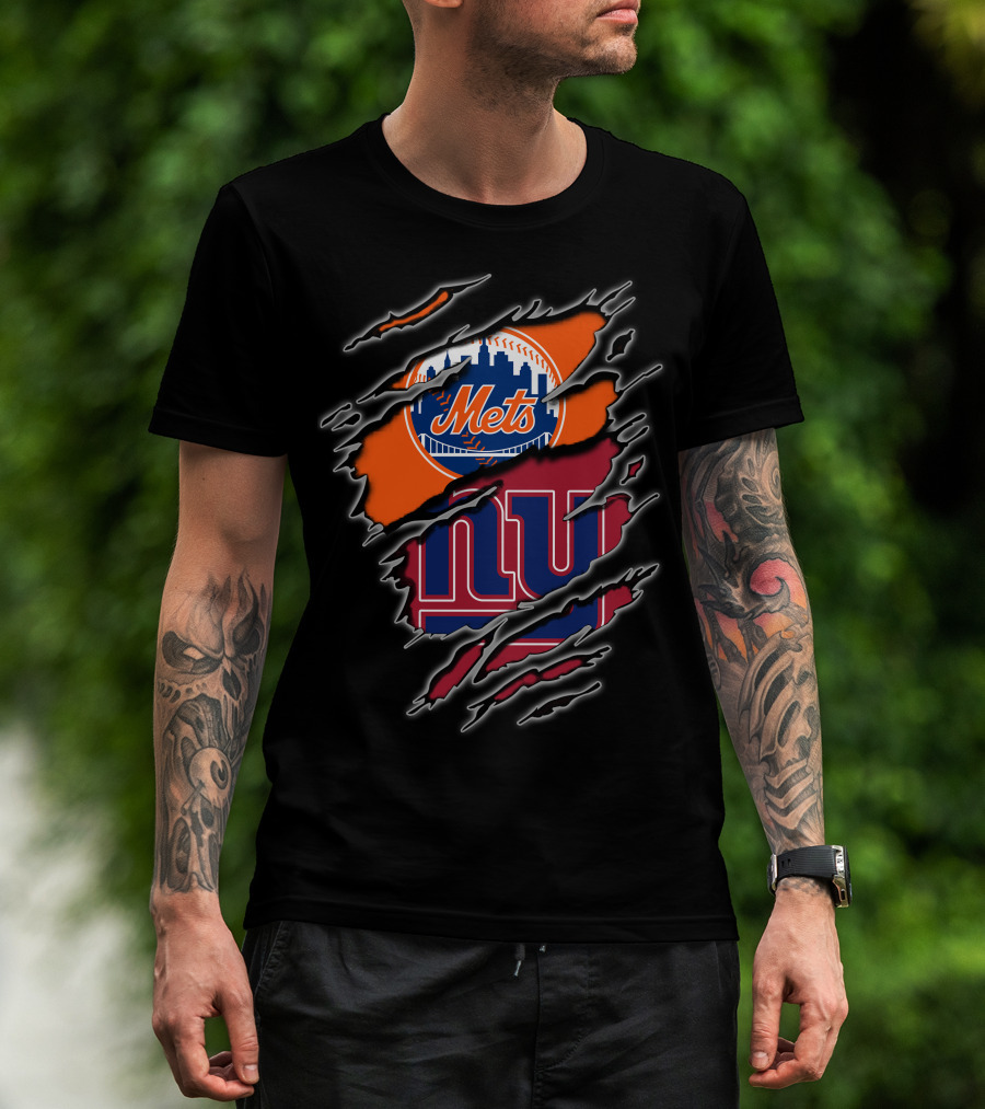 Mets Giants Logo Combo Tear Effect T-Shirt