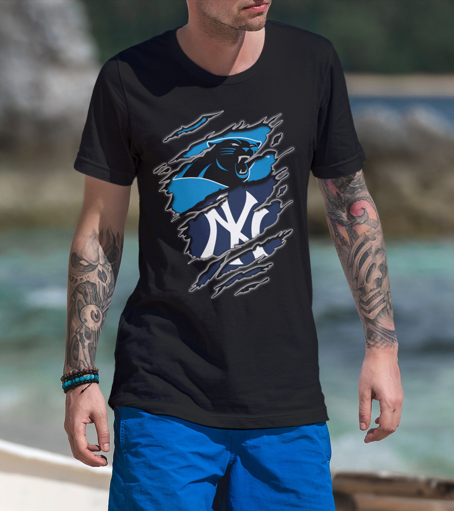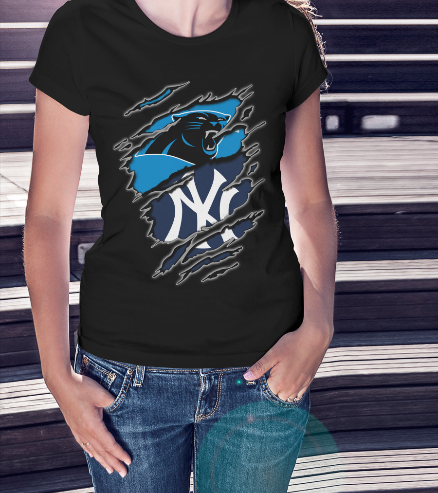 Carolina Panthers New York Yankees Claw Marks Fusion T-Shirt
