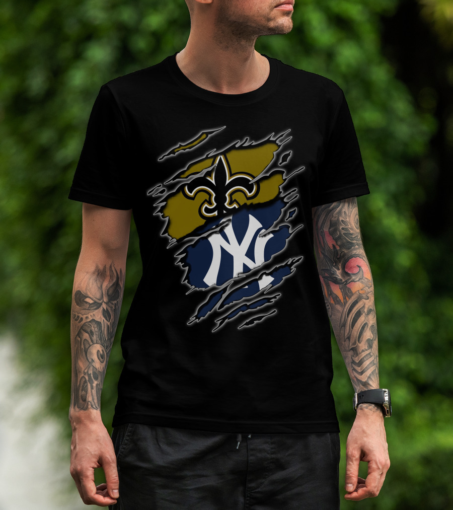Saints Yankees Logo Scratch Football Baseball Crossover T-Shirt