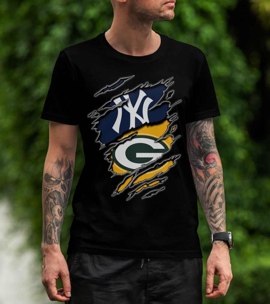 Yankees Packers Dual Team Logo Collaboration T-Shirt