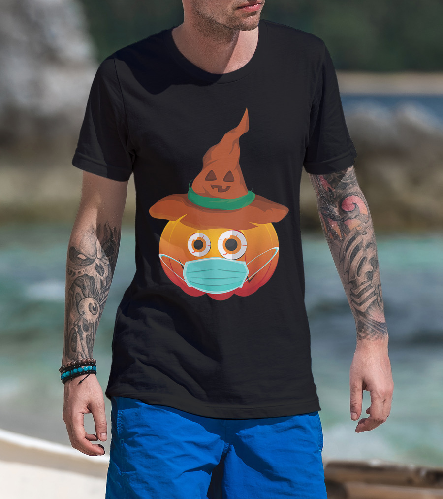Funny Pumpkin Mask Witch Hat Costume T-Shirt