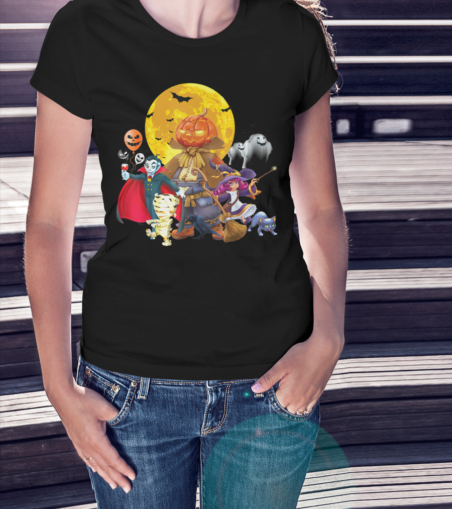 Halloween Horror Pumpkin Vampire Skeleton Witch Trick Treat Bat Ghost Moon T-Shirt