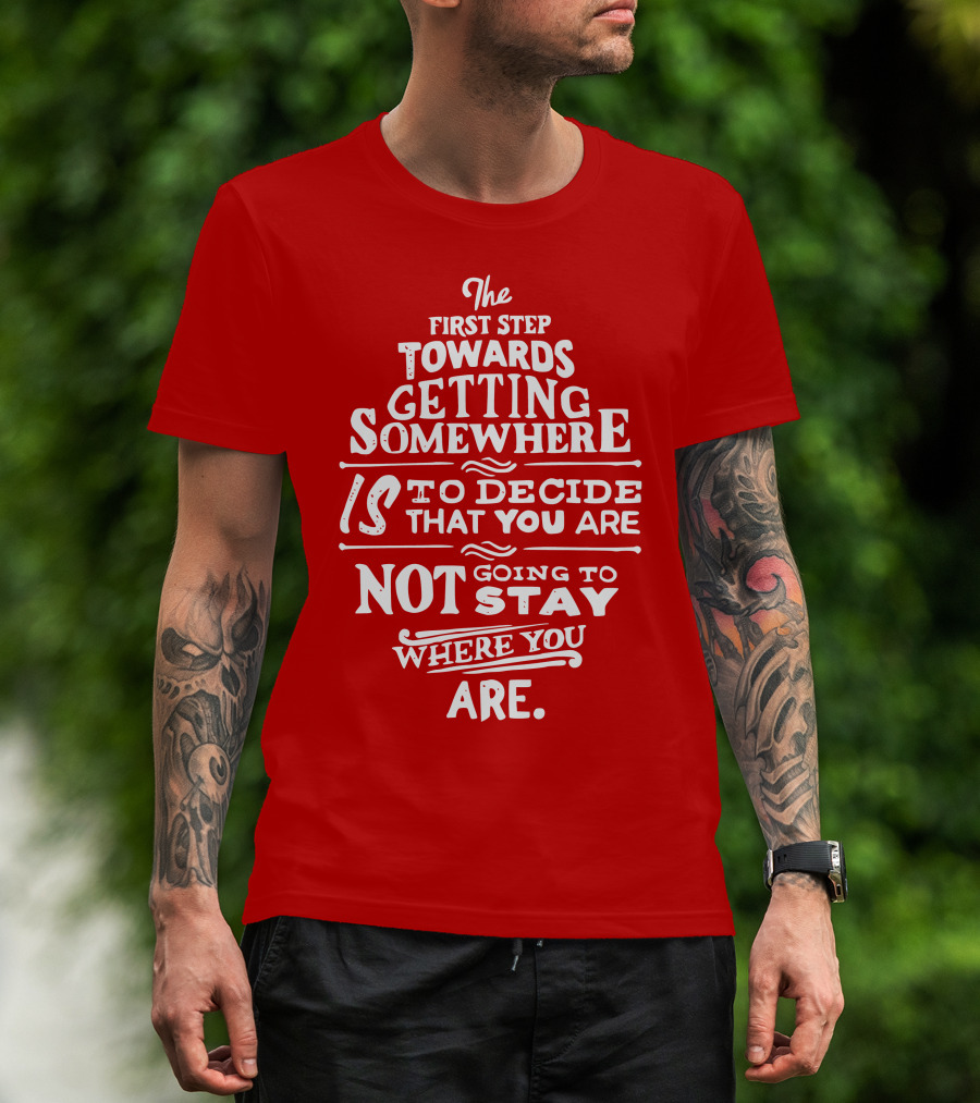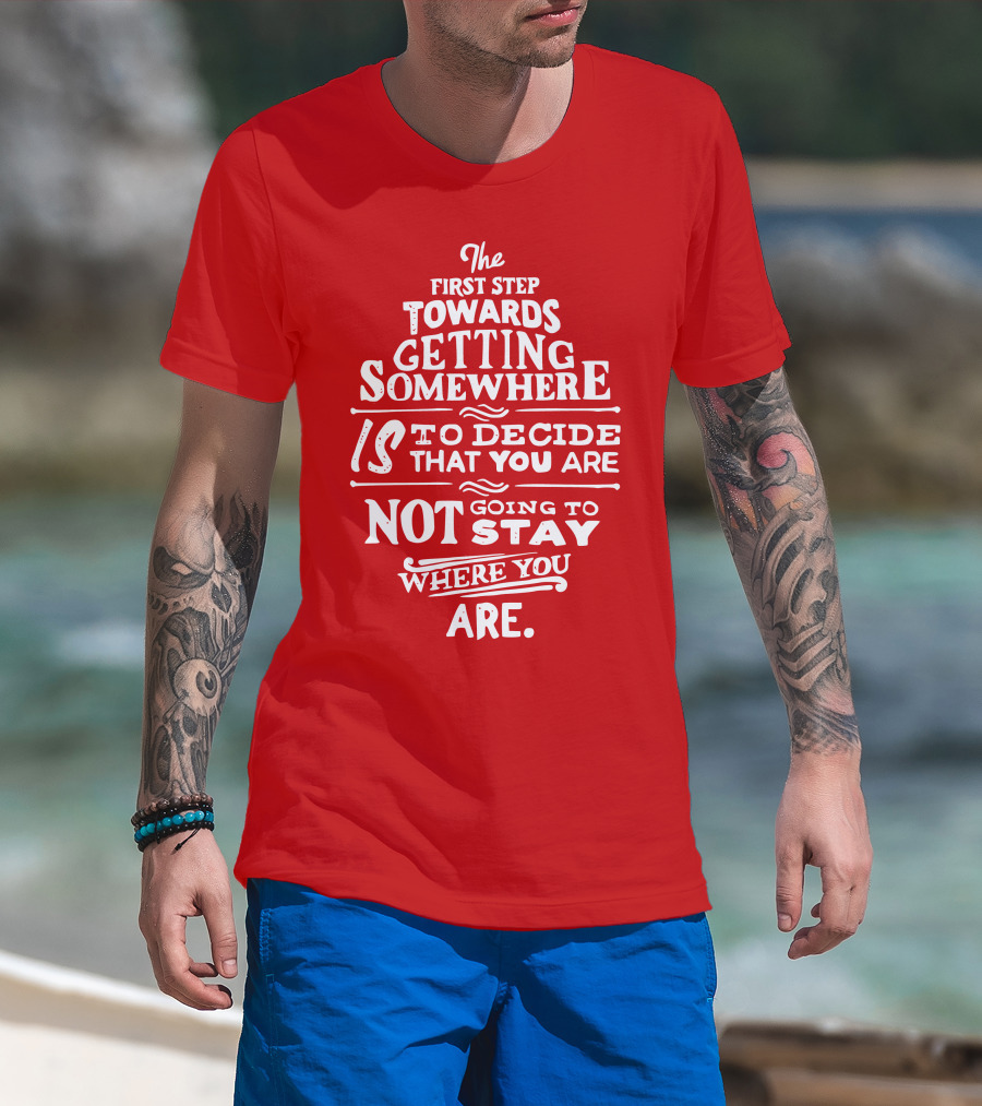 The First Step Towards Getting Somewhere Is To Decide That You Are Not Going To Stay Where You Are T-Shirt