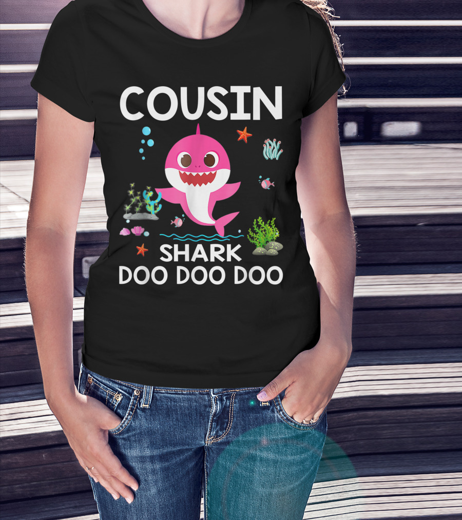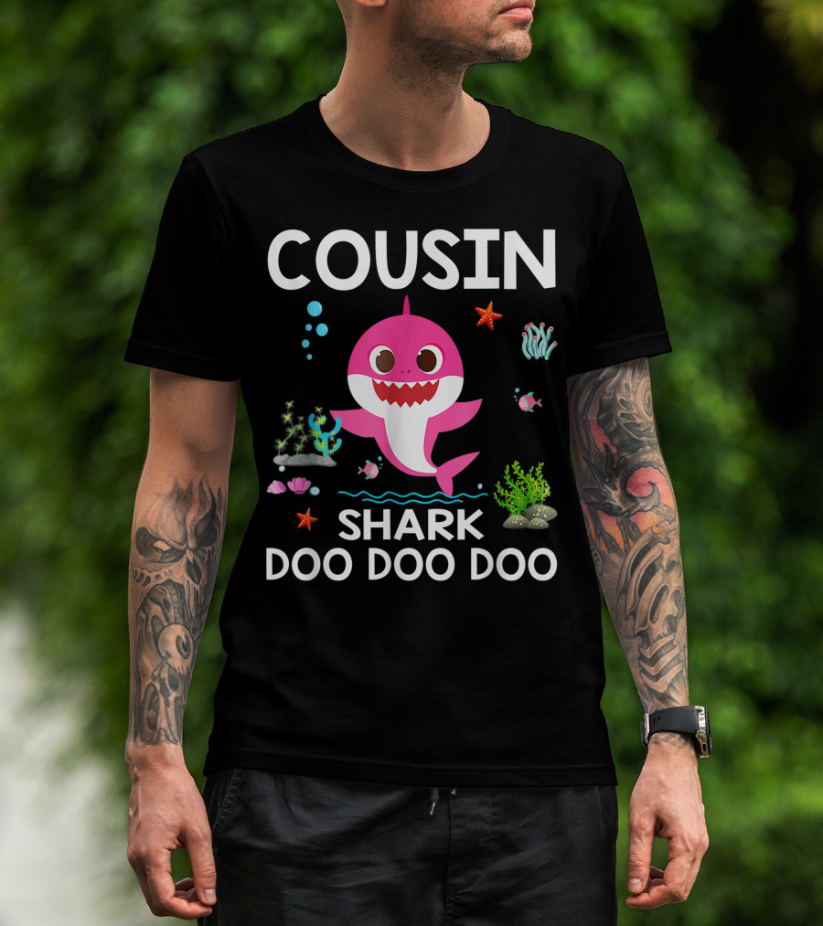 Cousin Shark Doo Doo Doo Funny Cousin Best Birthday With Underwater Sea Creatures And Pink Shark T-Shirt